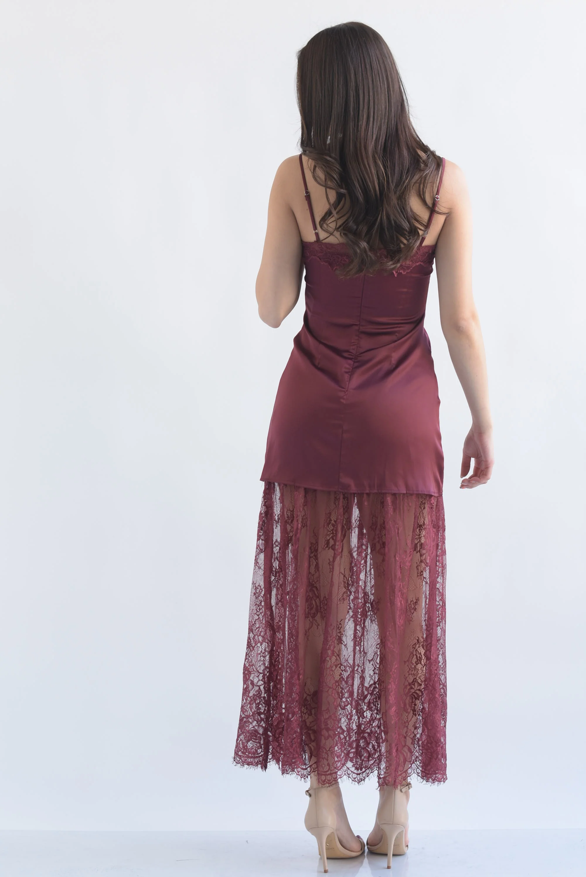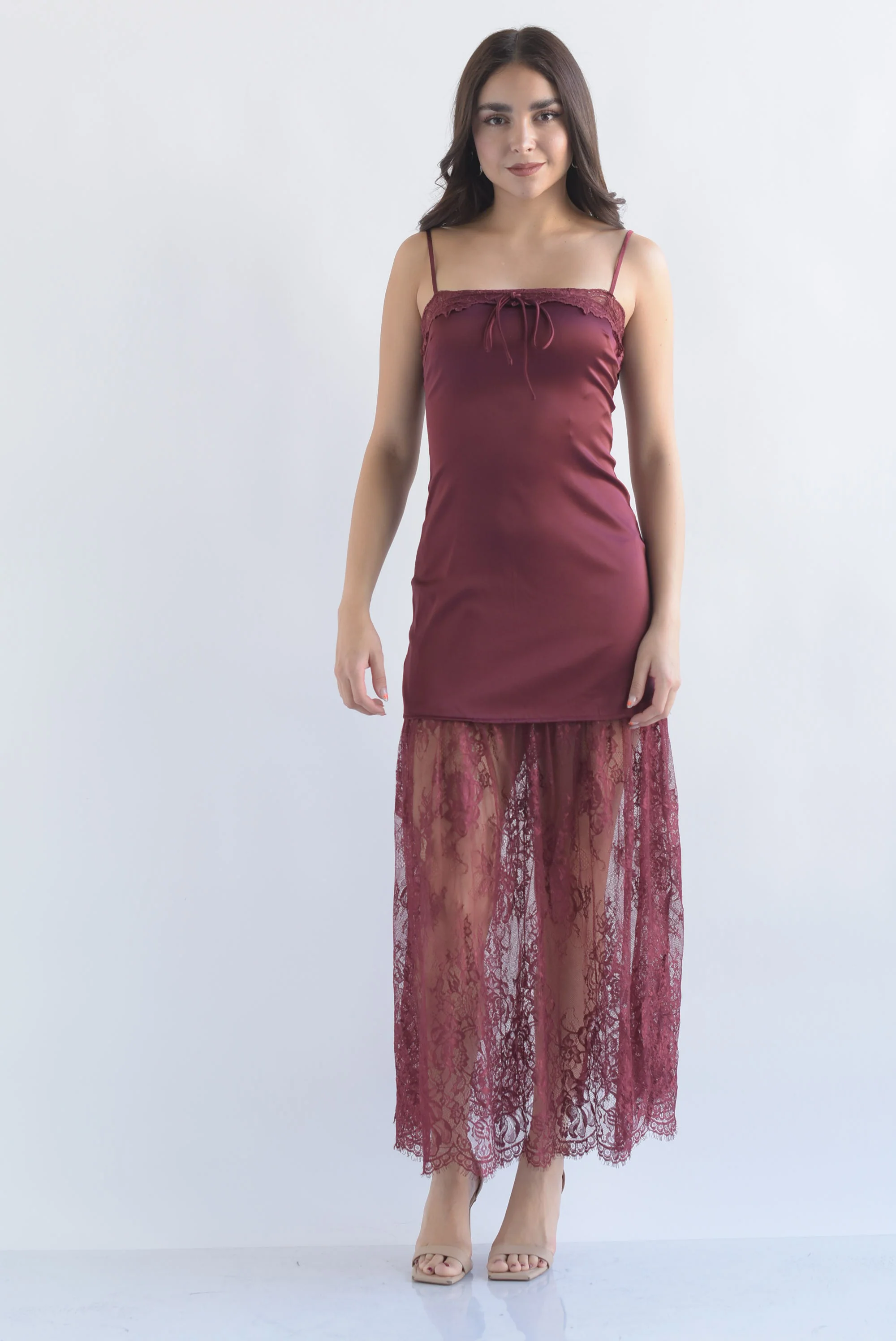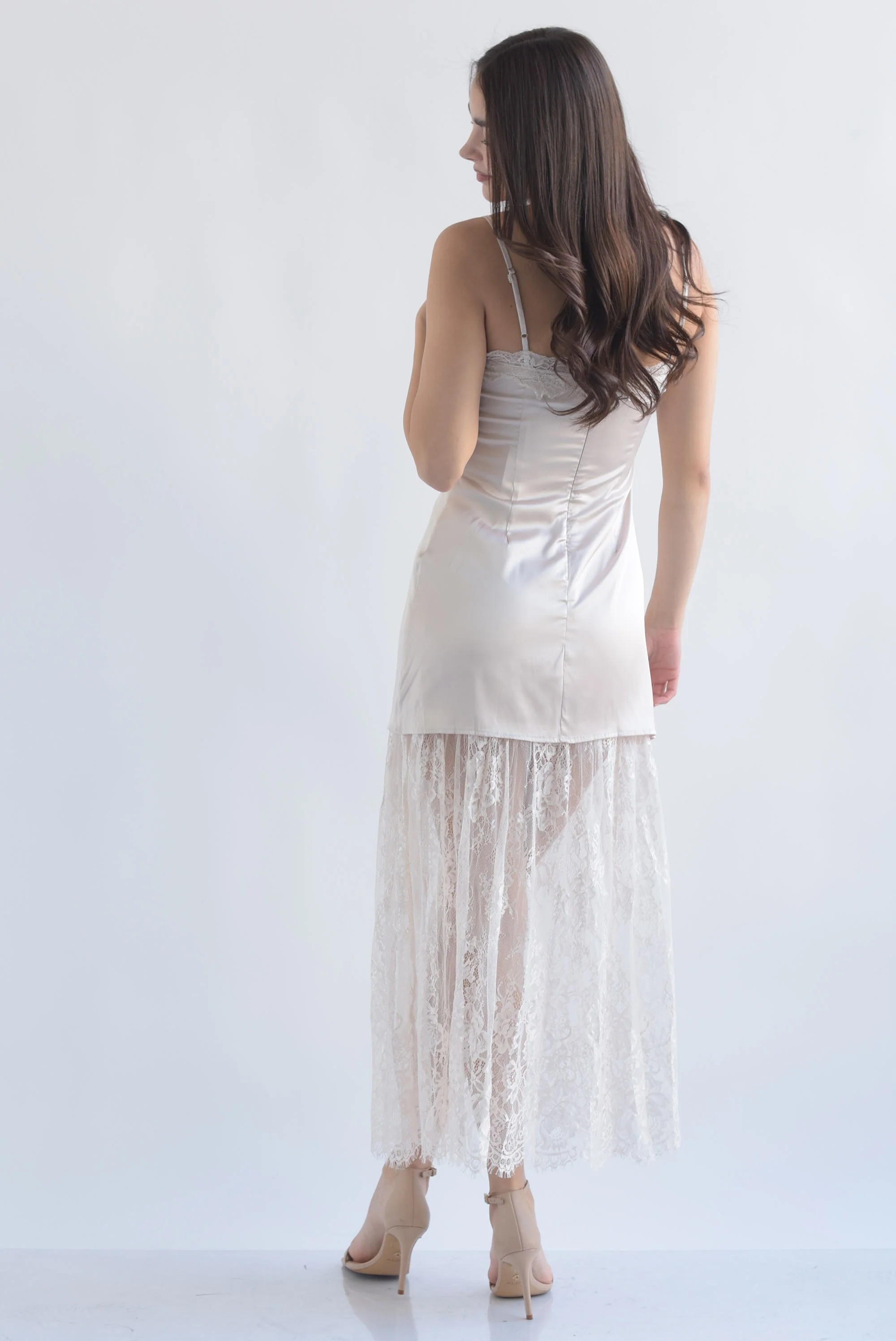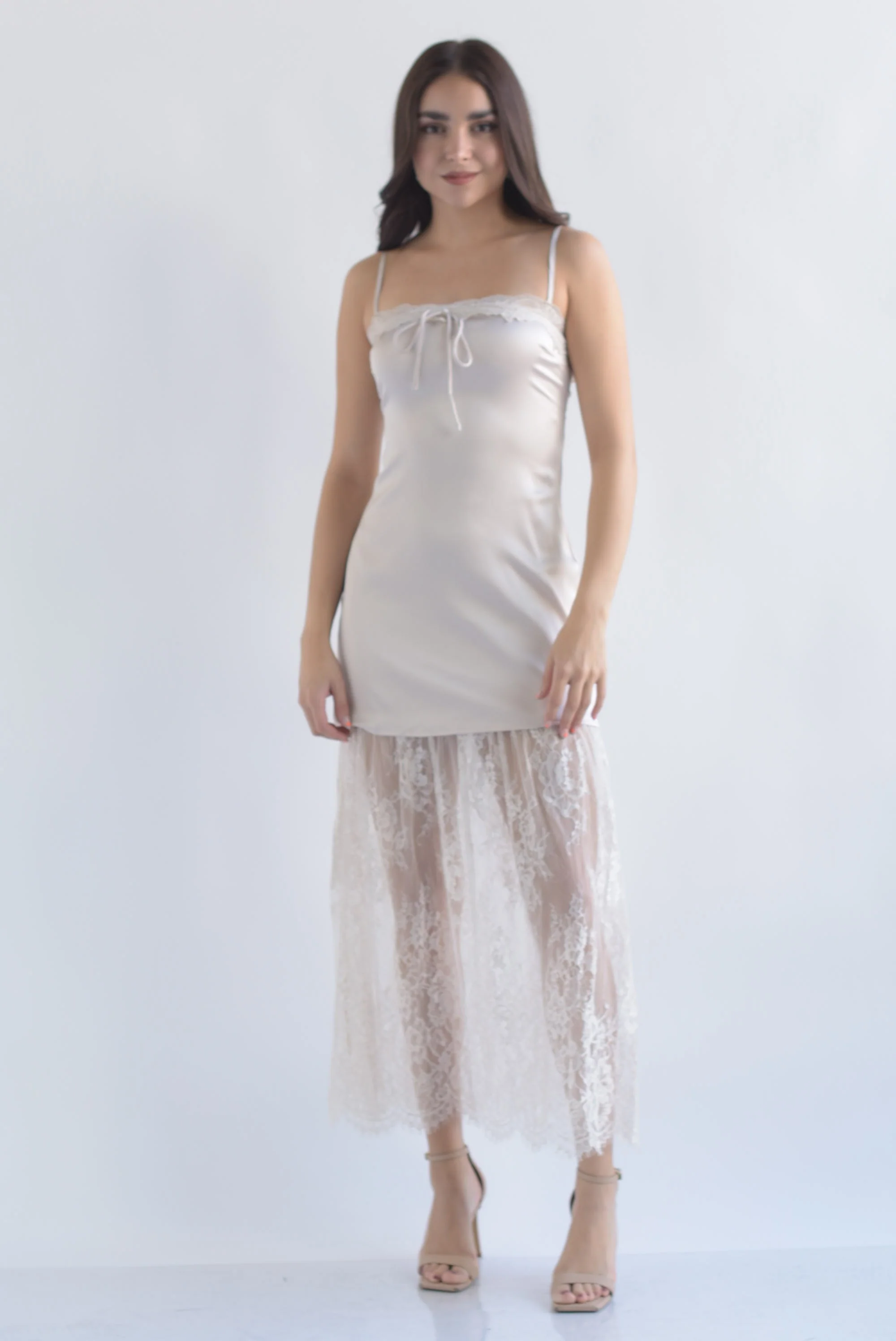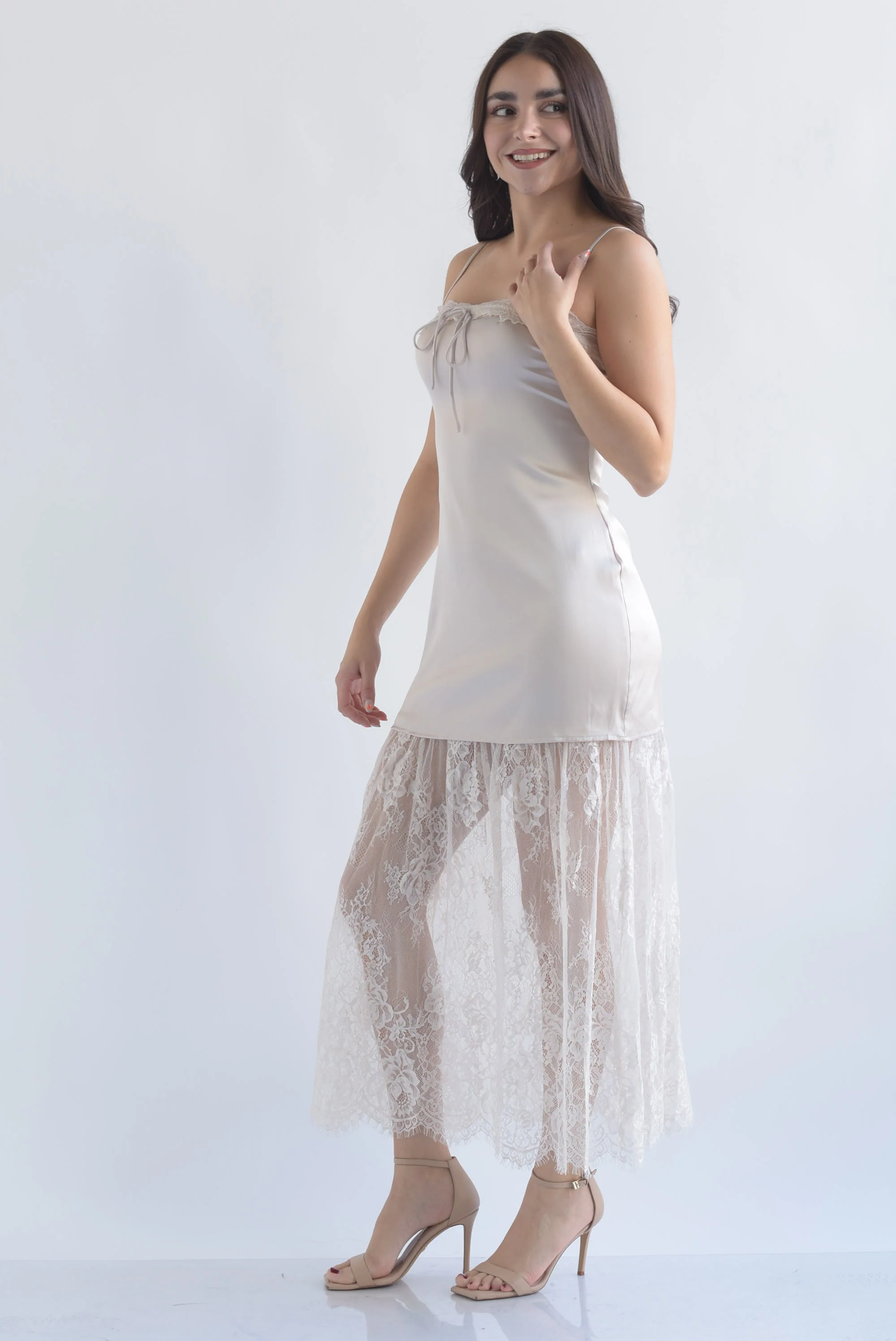 Vestido lencero falda encaje
