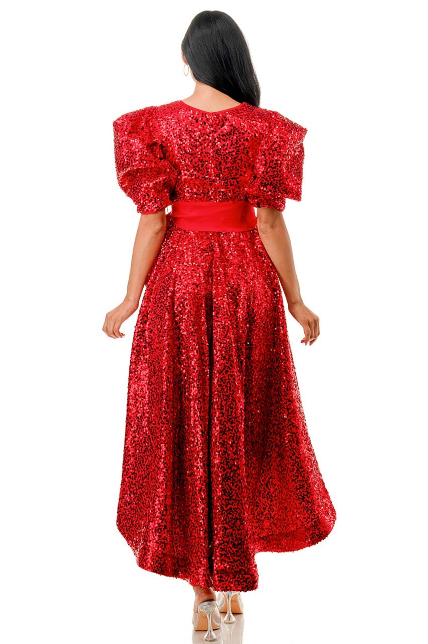 Vestido manga puffy cauda lentejuela