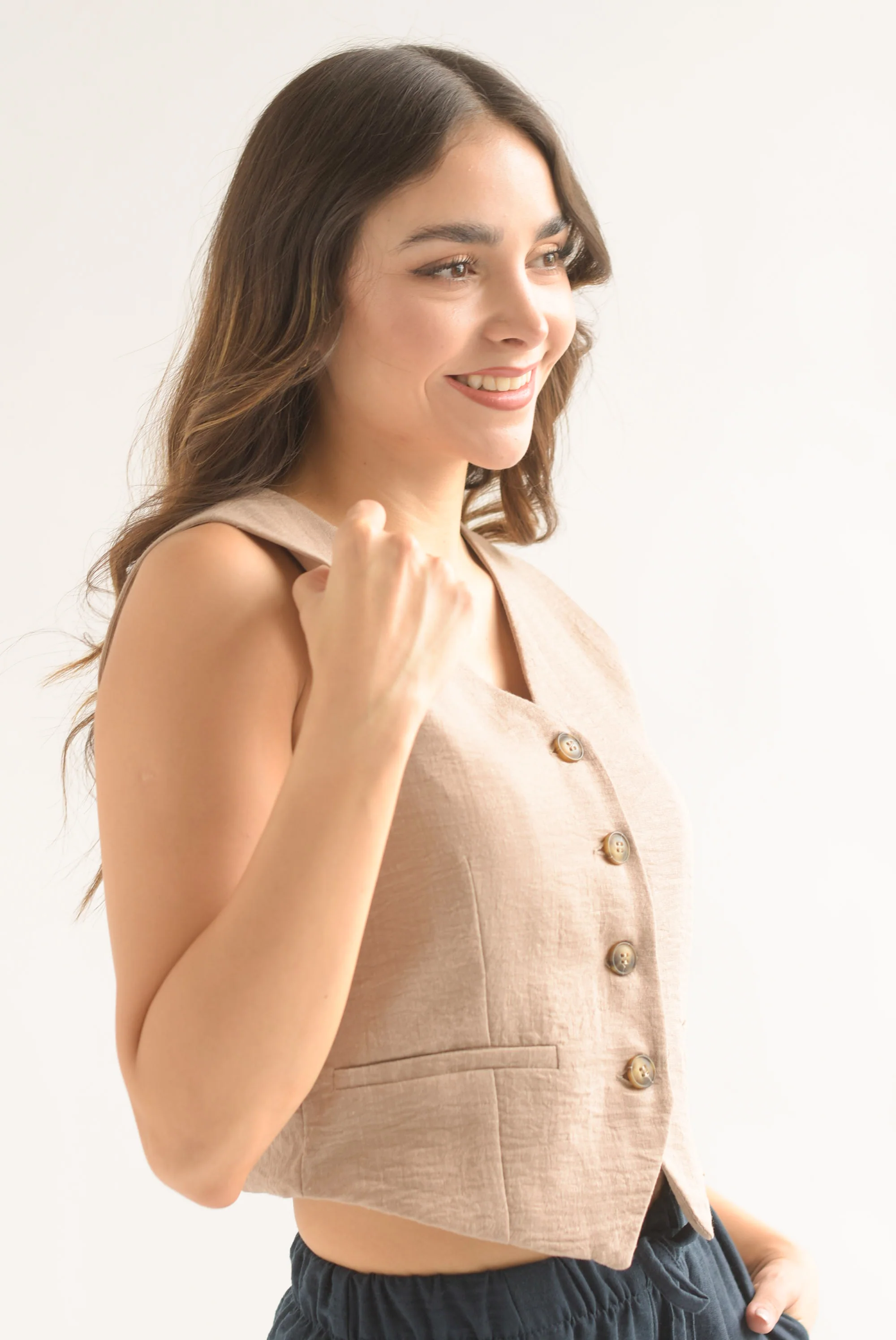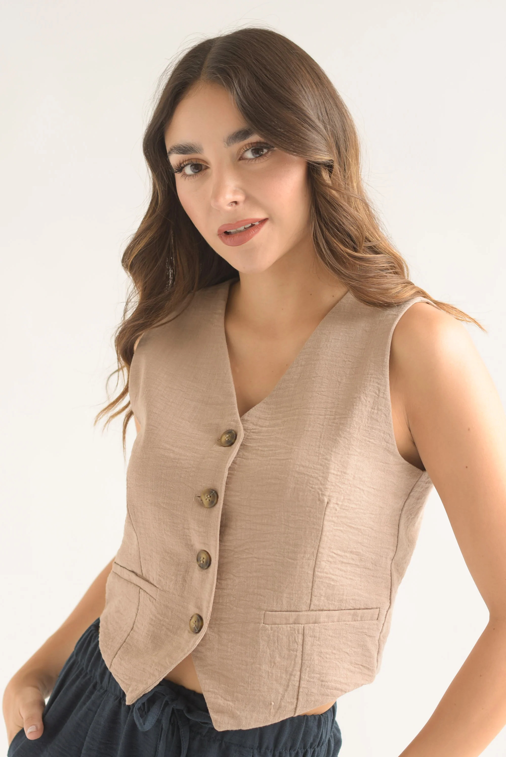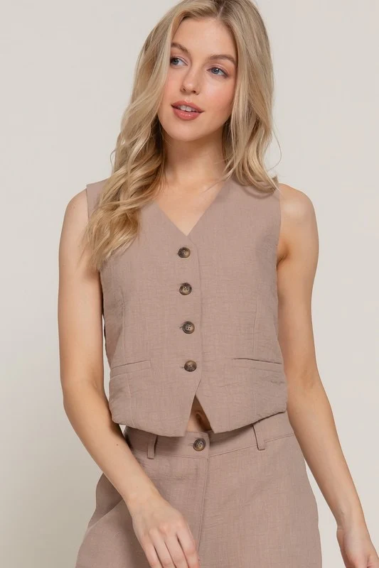 Chaleco simulación lino Moka