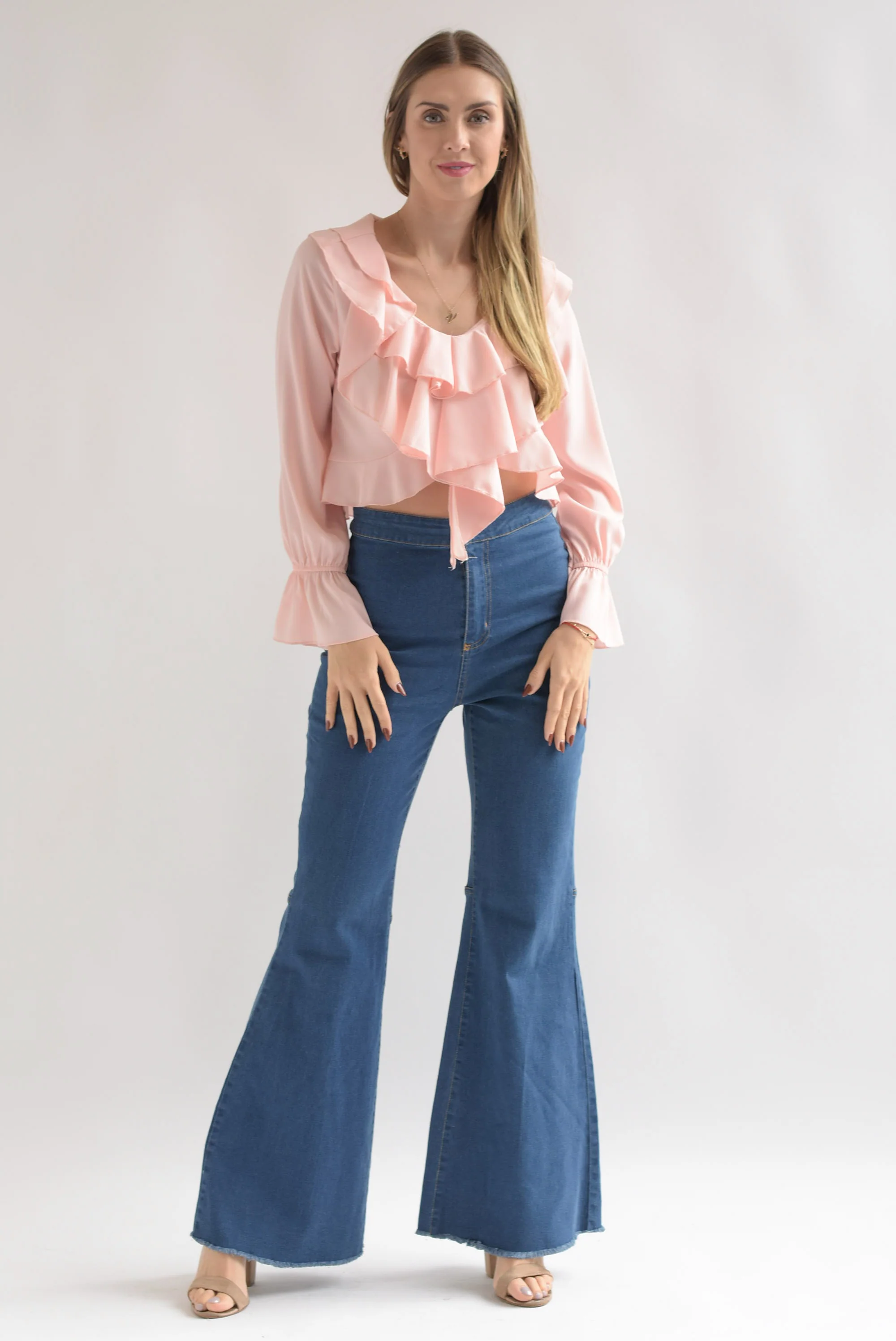 Blusa corta manga larga olanes Rosa