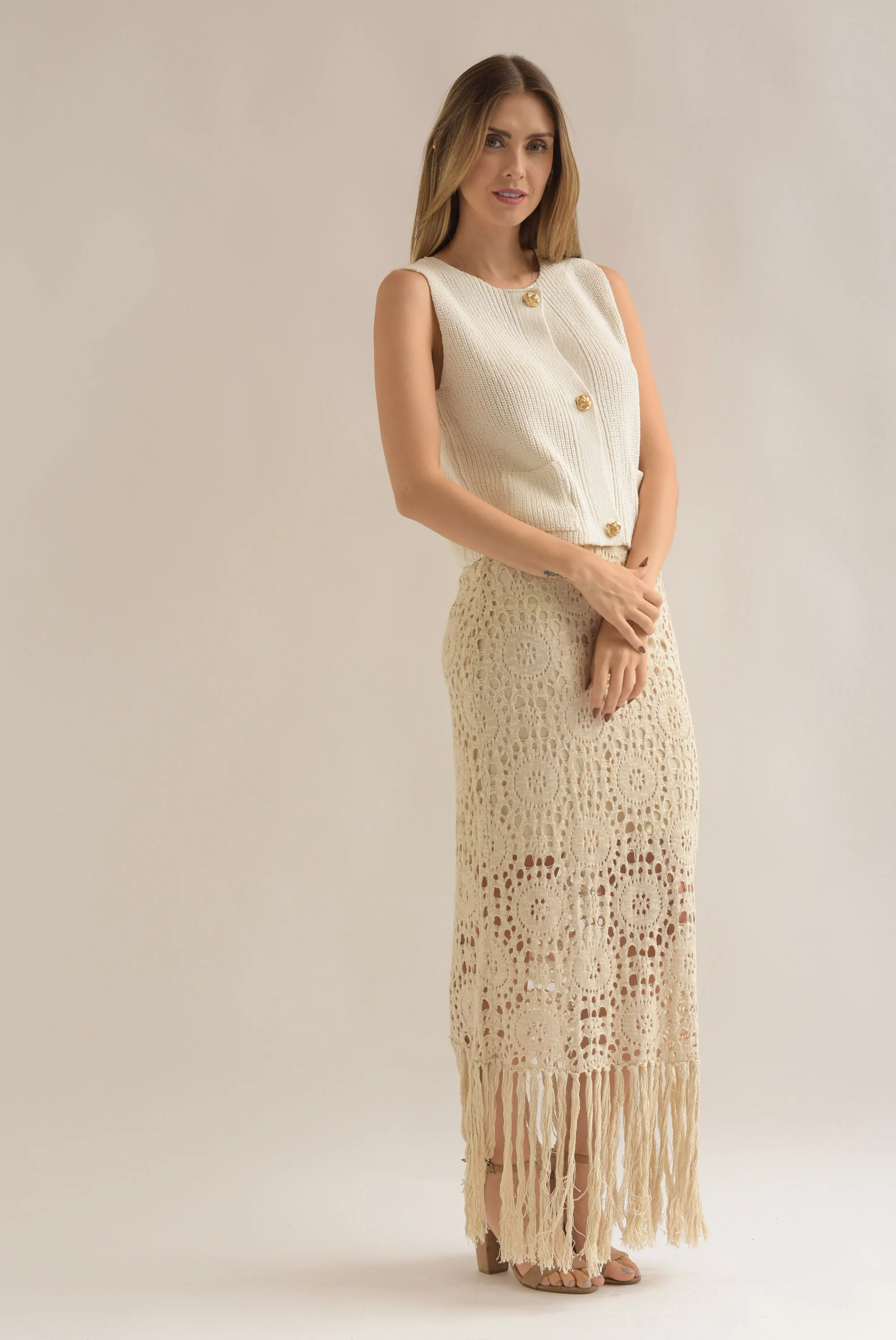 Chaleco crochet botones dorados Ivory