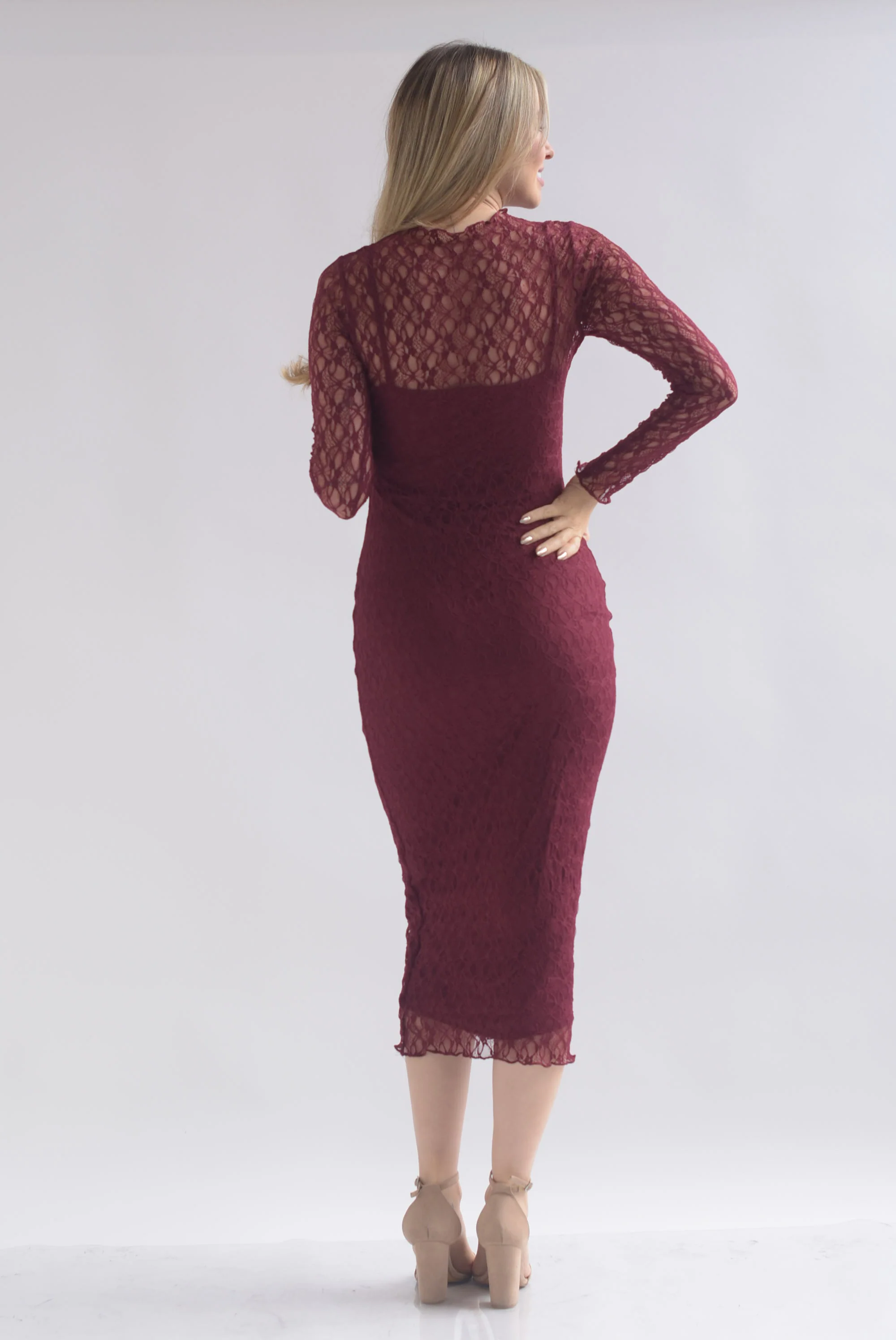 Vestido manga larga encaje
