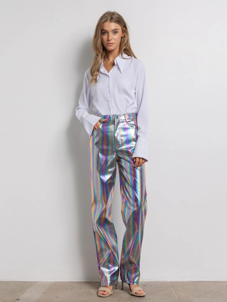 Pantalón recto metálico Tornasol