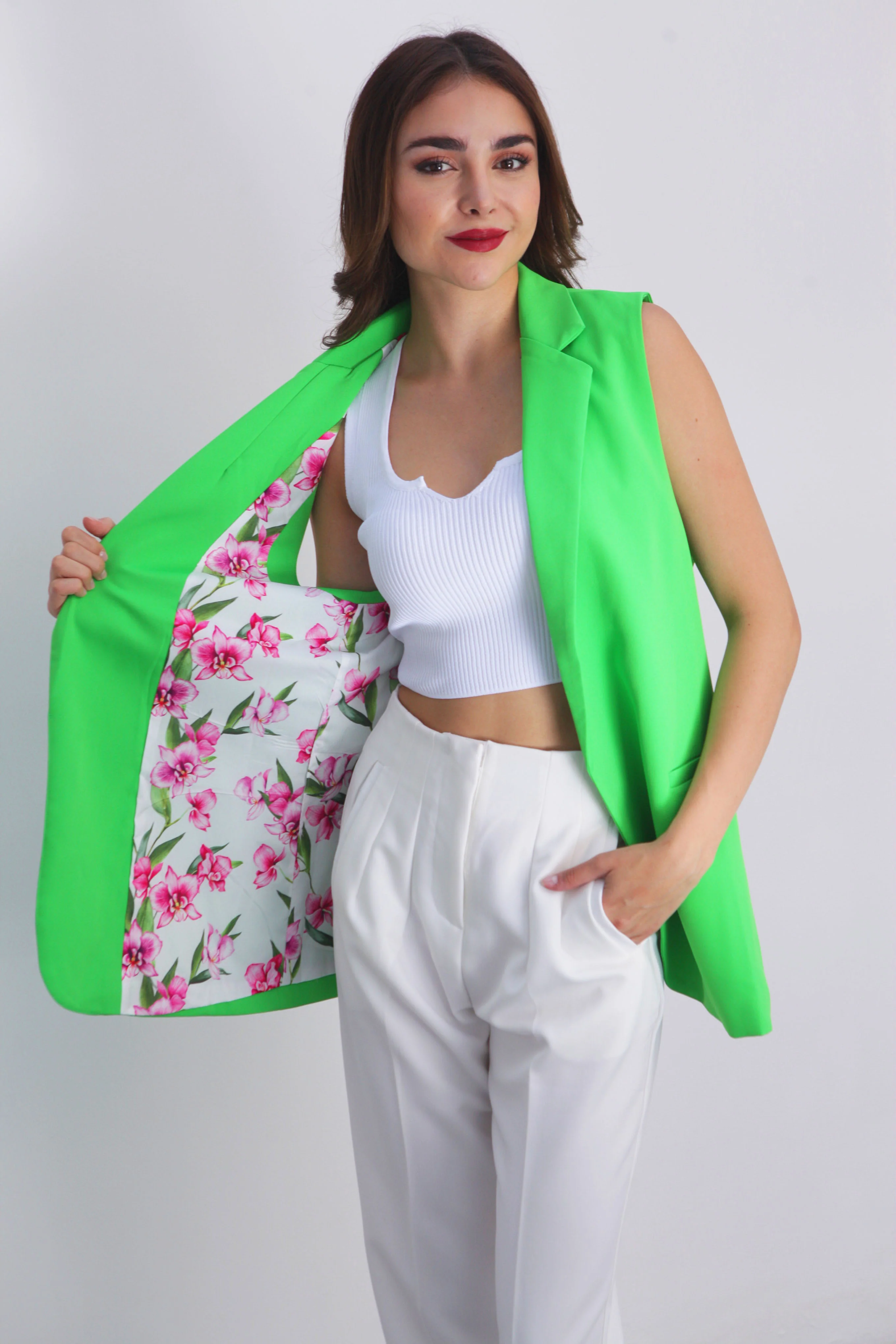 Chaleco de vestir Verde con forro de flores