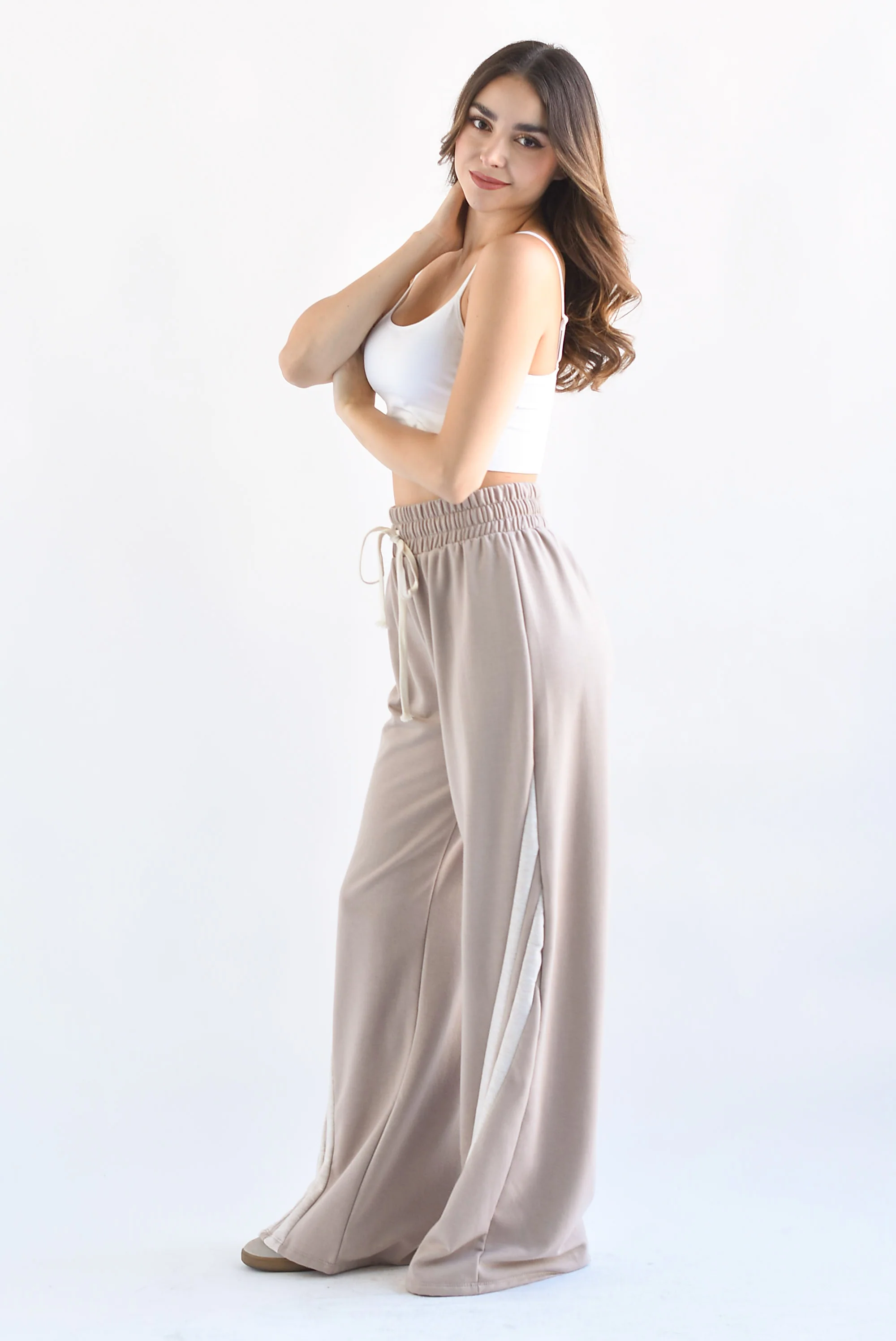 Pantalón wide algodón track Moka