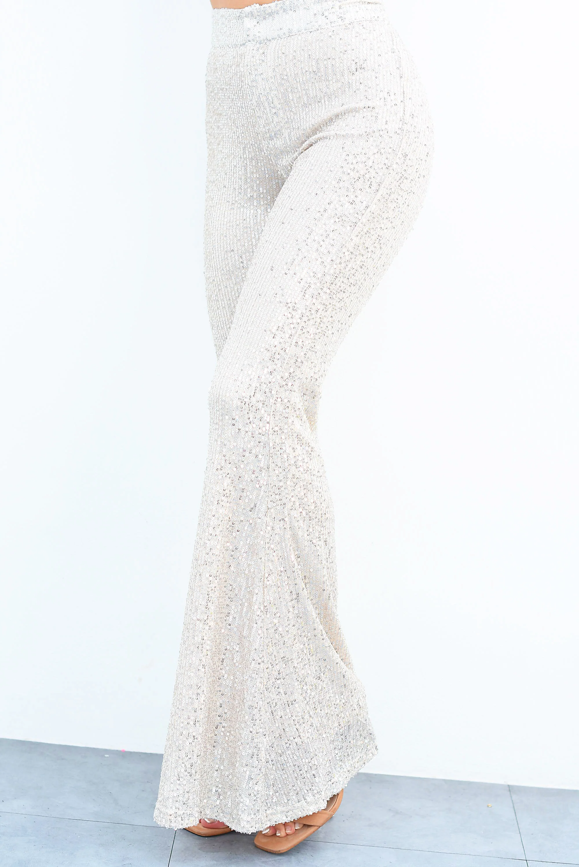 Pantalón flare lentejuela Plata
