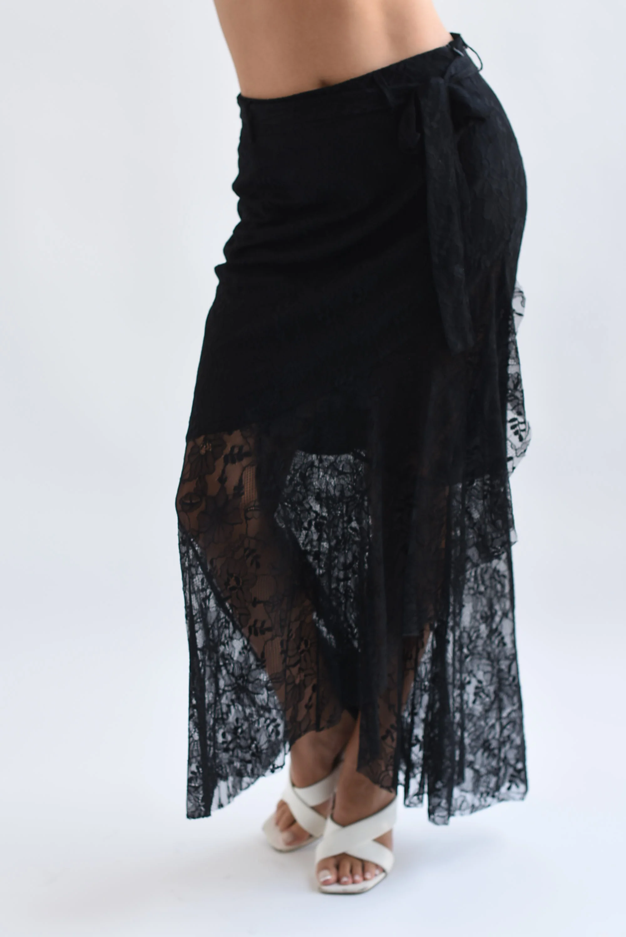 Falda olán cinta encaje Negro