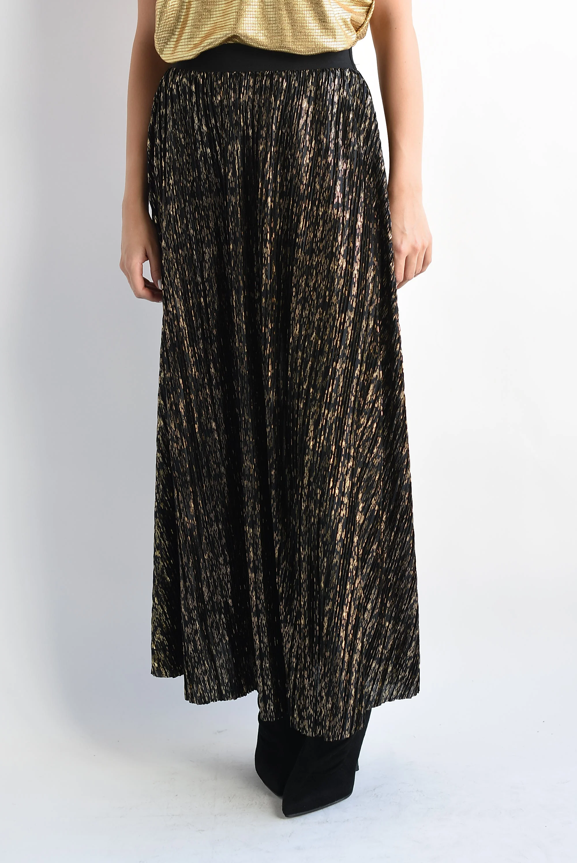 Falda plisada Negro con Dorado