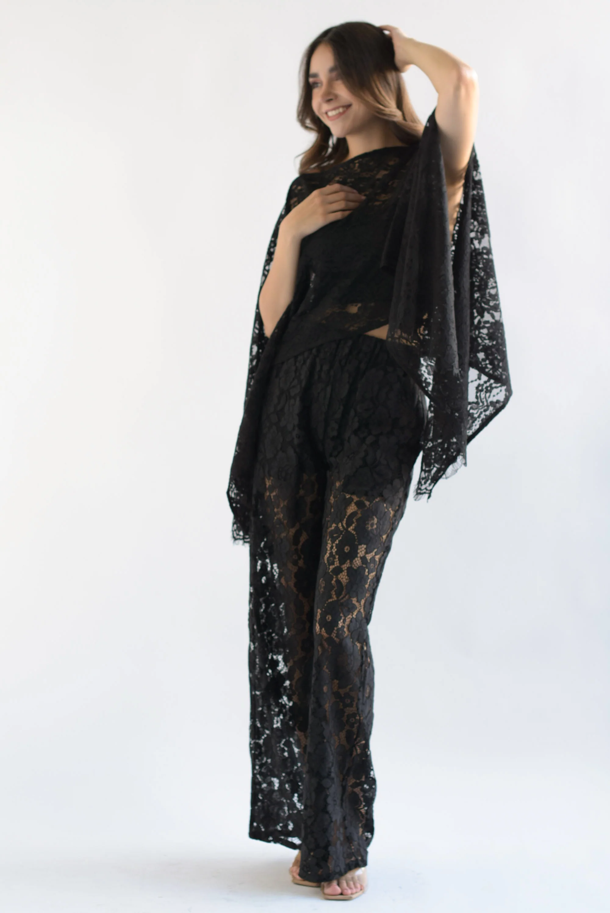 Set Pantalón y Capa encaje Negro