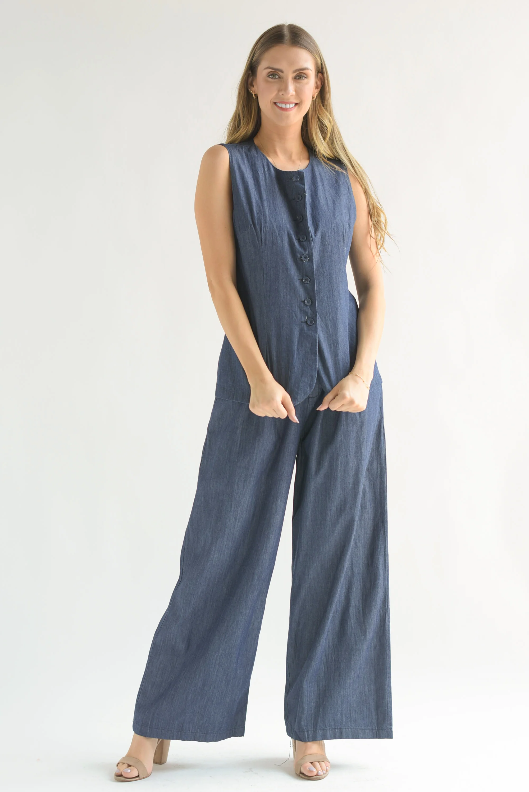 Set Pantalón super wide y Chaleco largo Denim Dark
