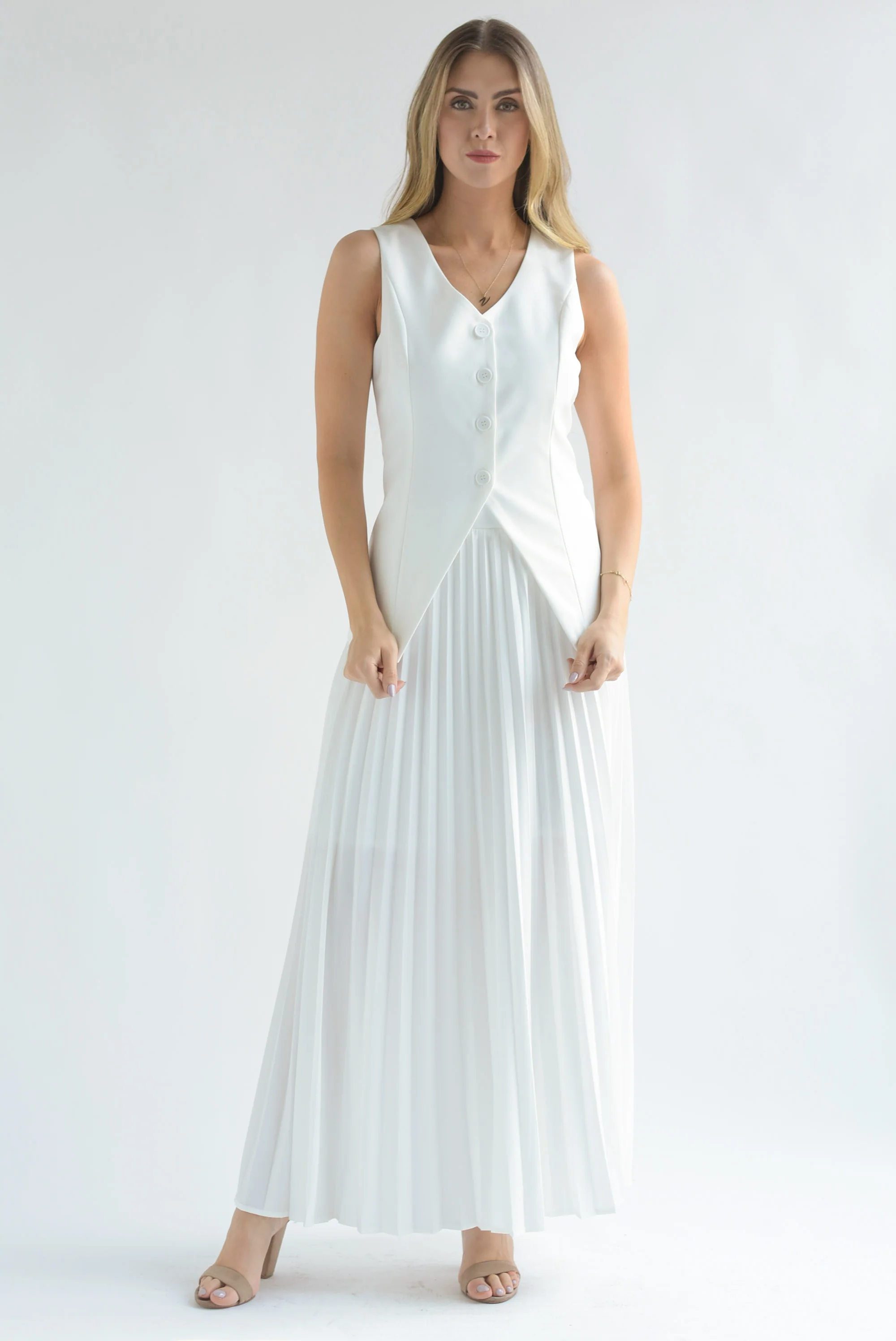 Set Falda plisada y Chaleco Blanco