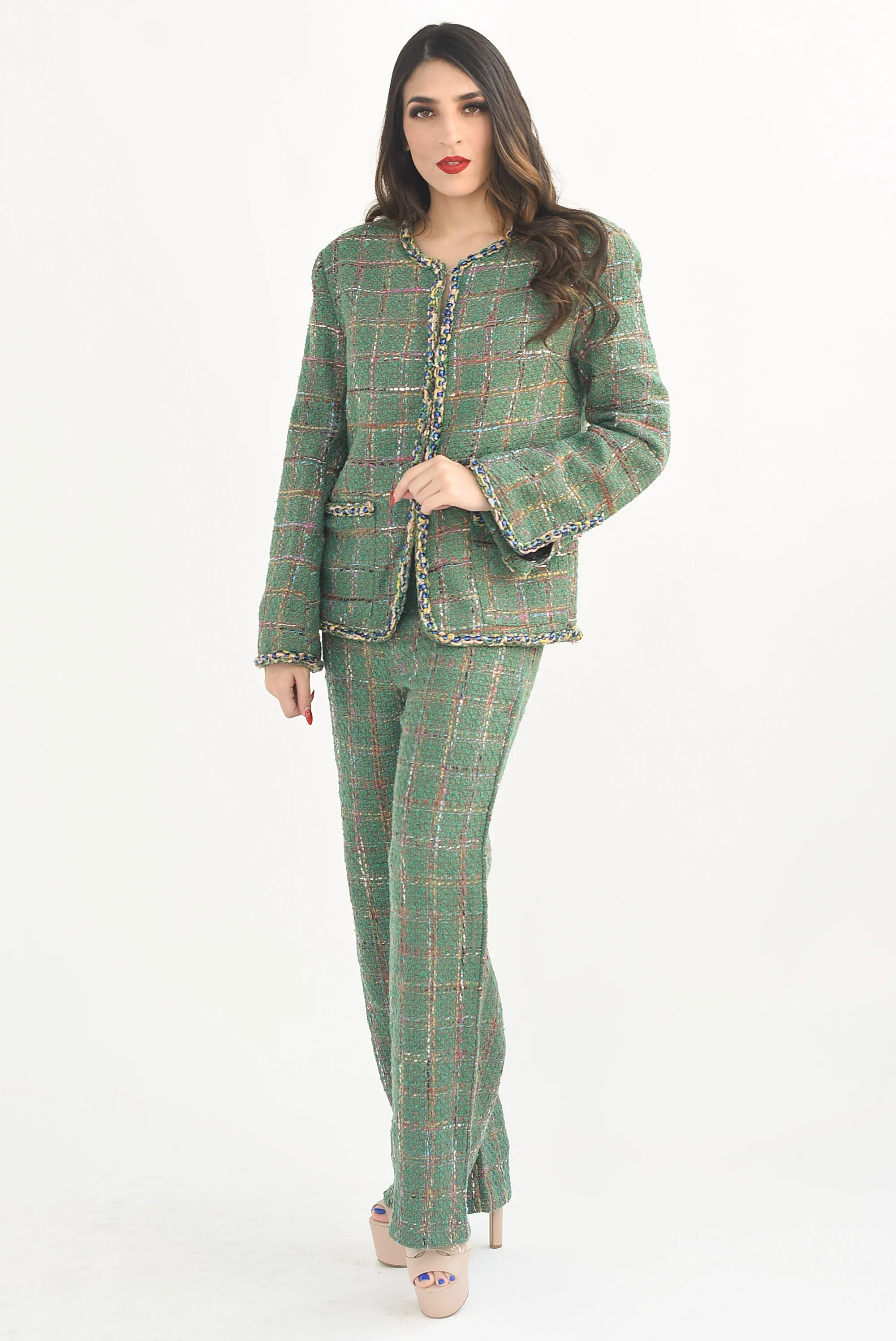 Set Pantalón y Blazer tweed Verde