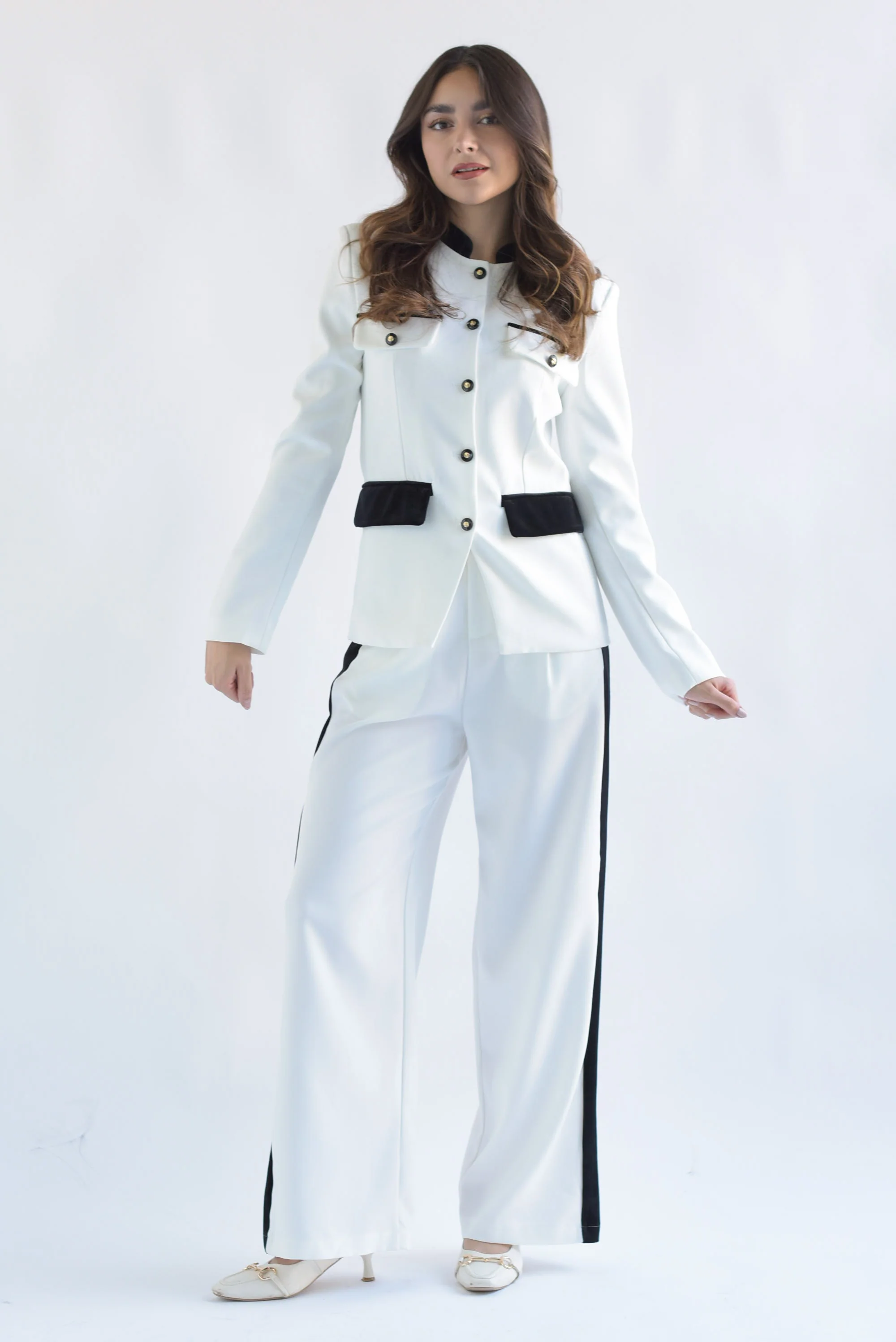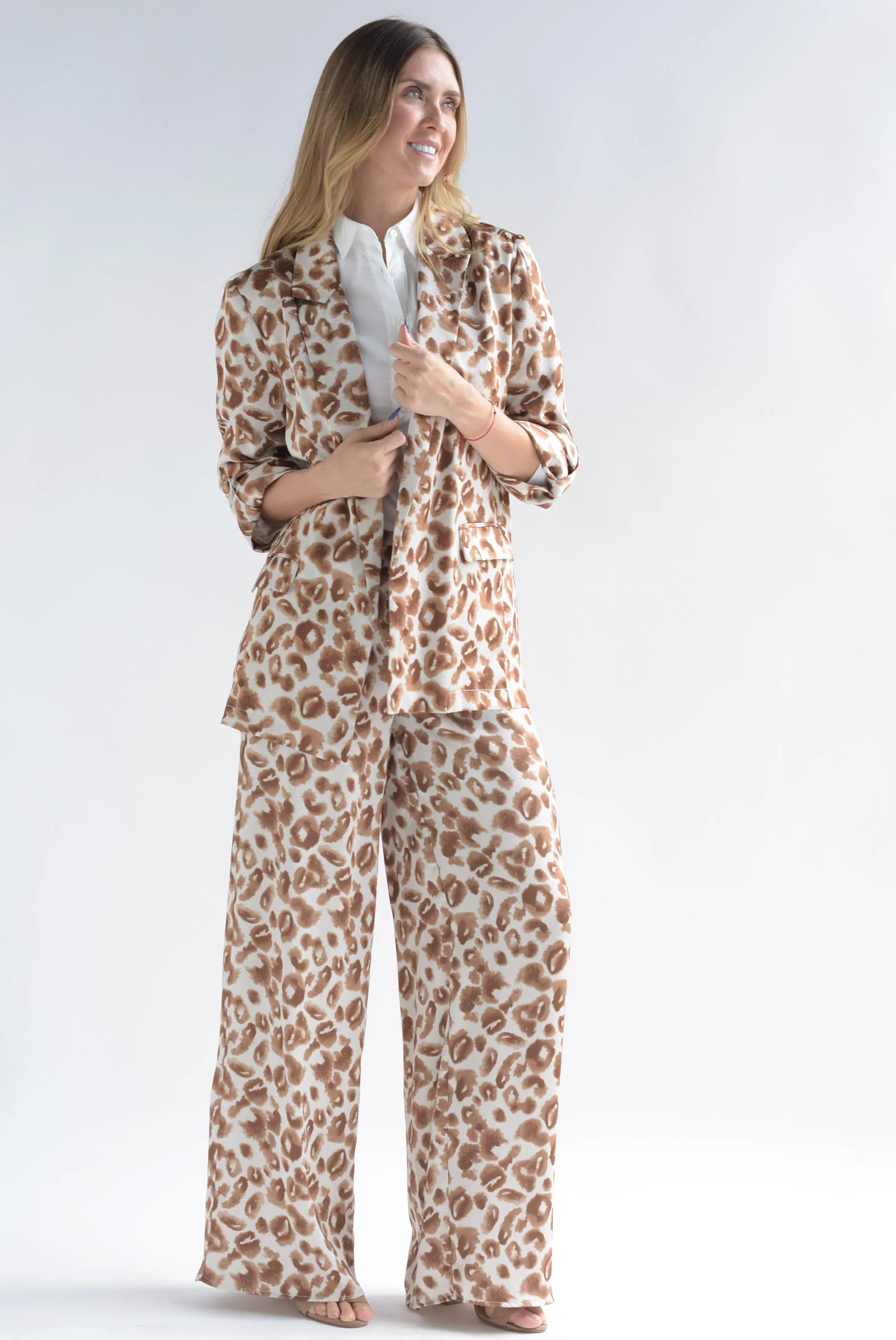 Set Pantalón y Blazer Satín Animal Print Ivory