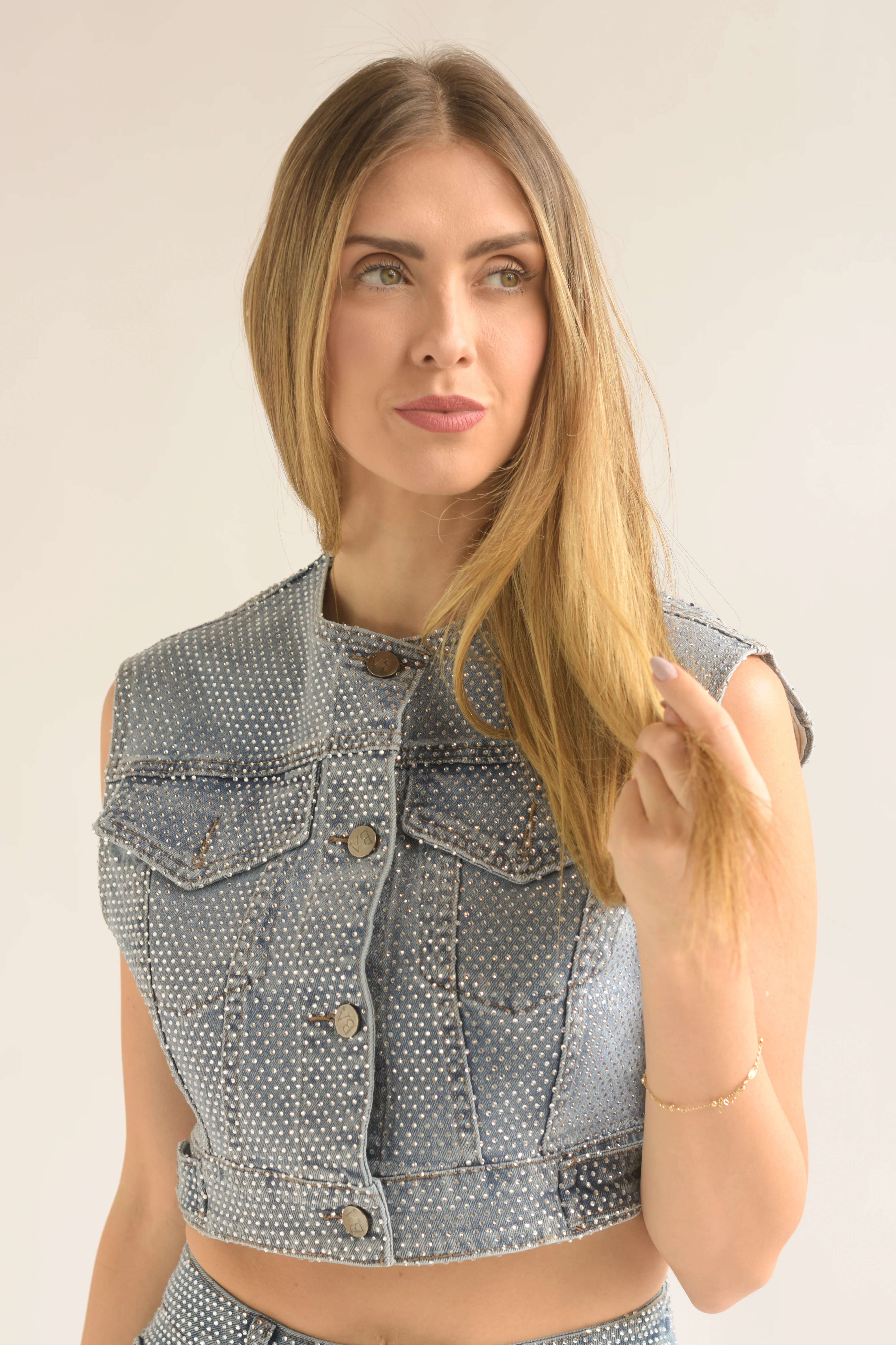 Chaleco Denim crop brillos