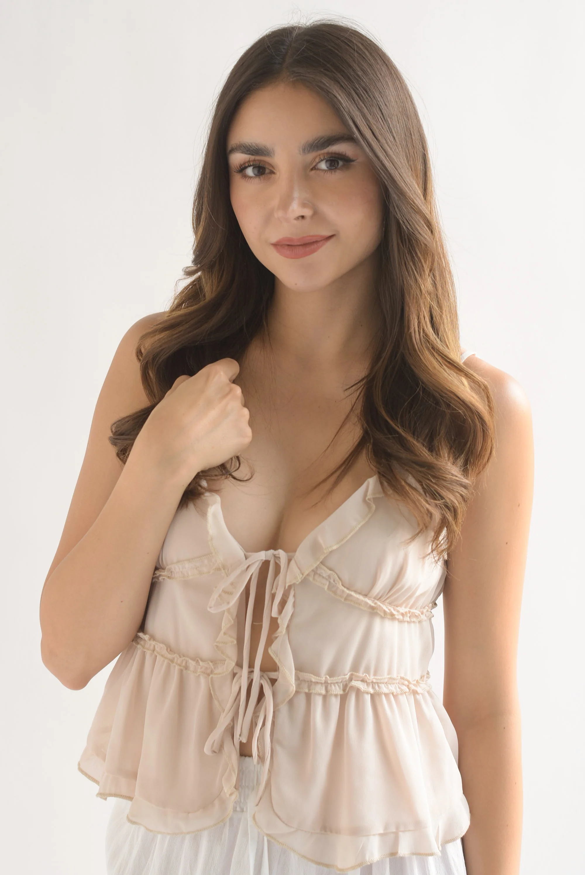 Blusa tirantes olanes lazos Beige