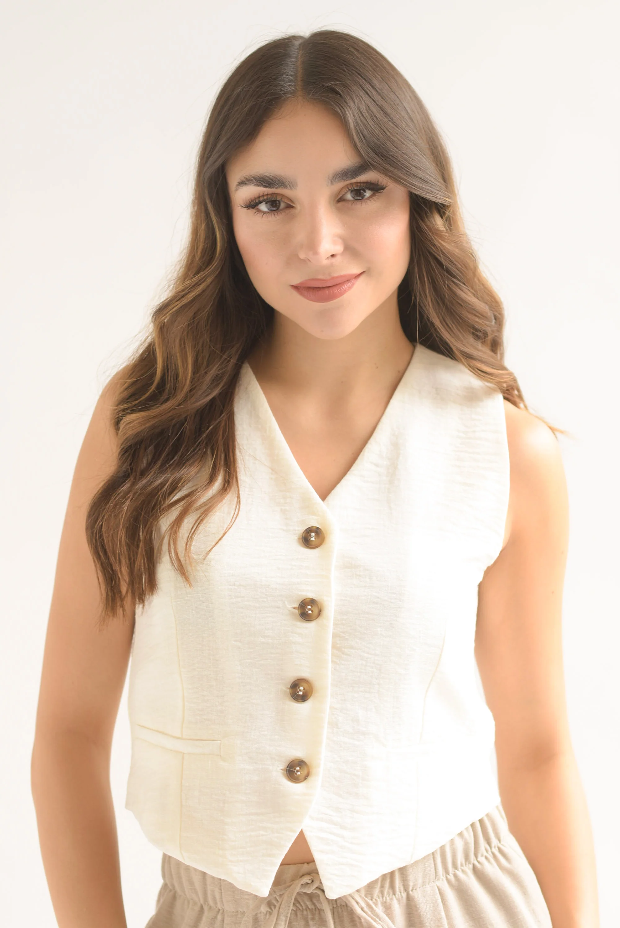 Chaleco simulación lino Ivory