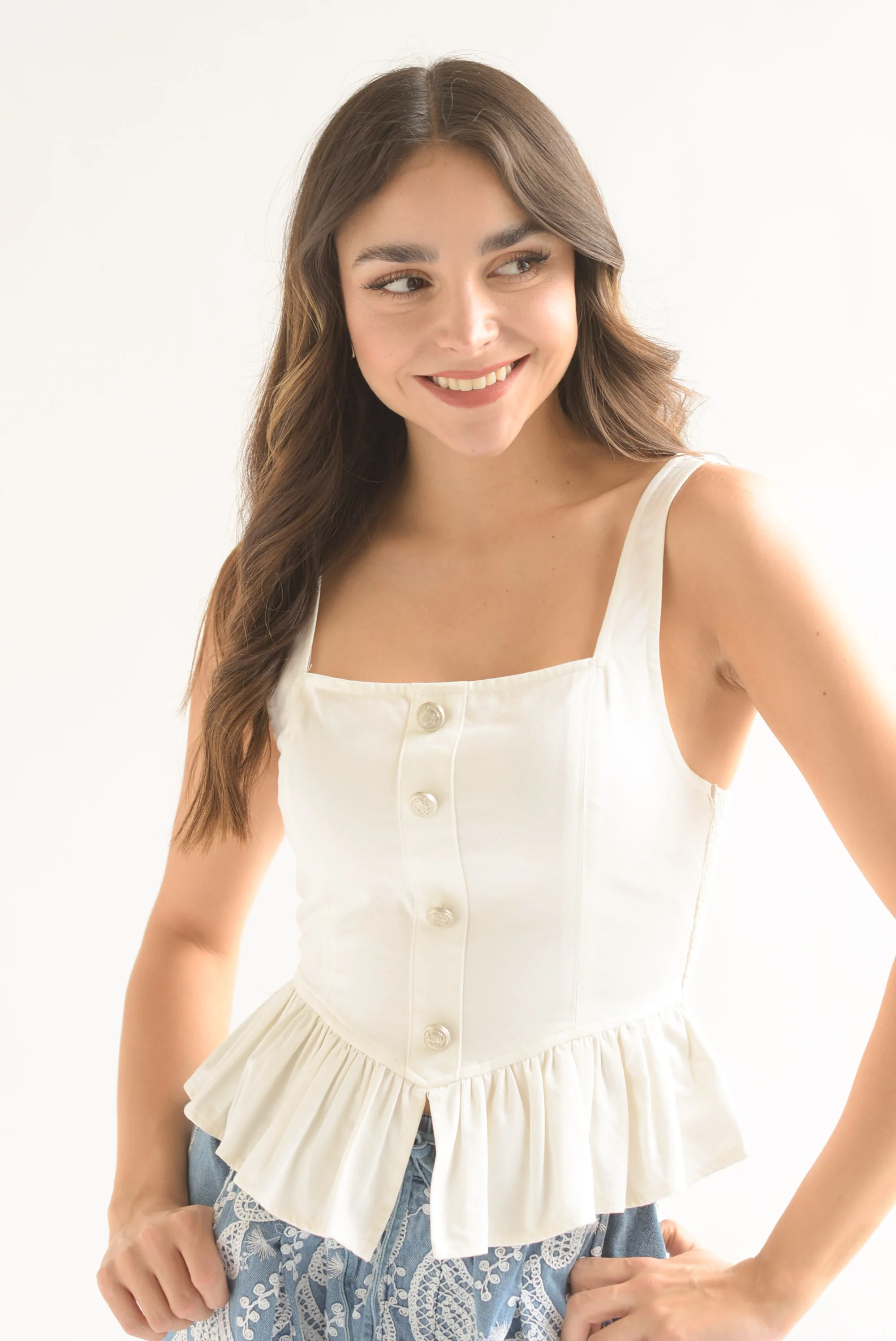 Blusa peplum tirante grueso Blanco