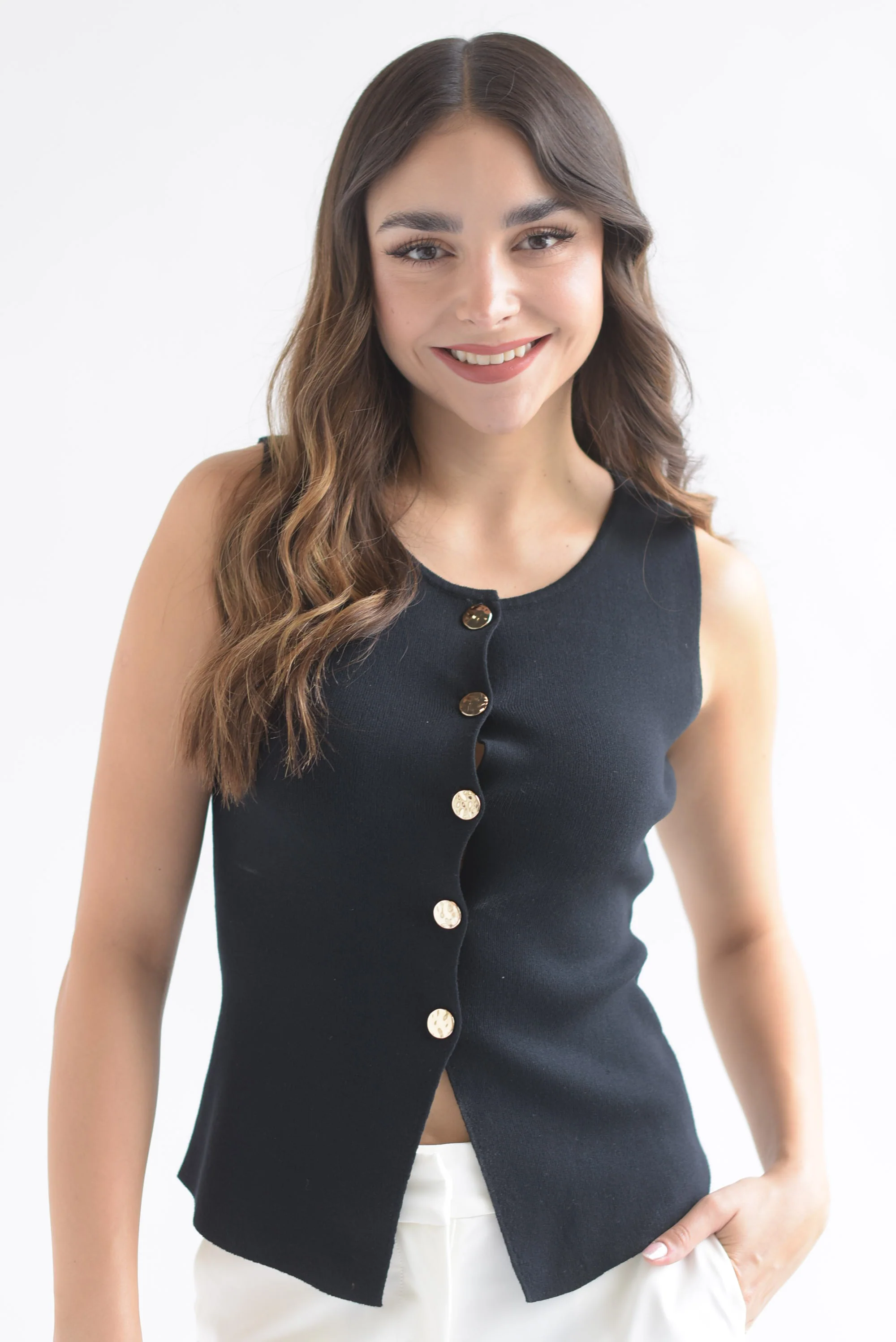 Chaleco punto botones dorados Negro