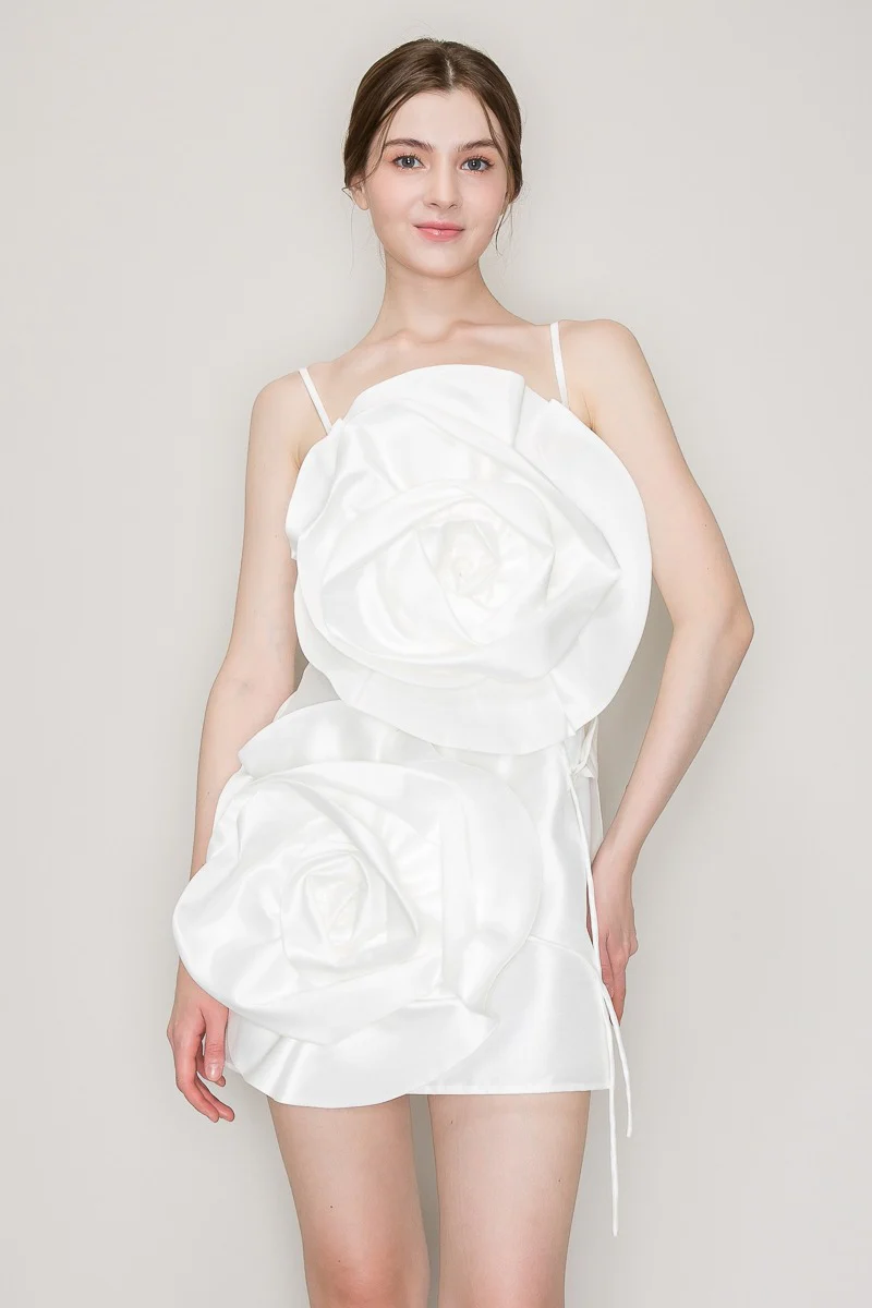 Vestido corto Maxi Flores 3D Blanco