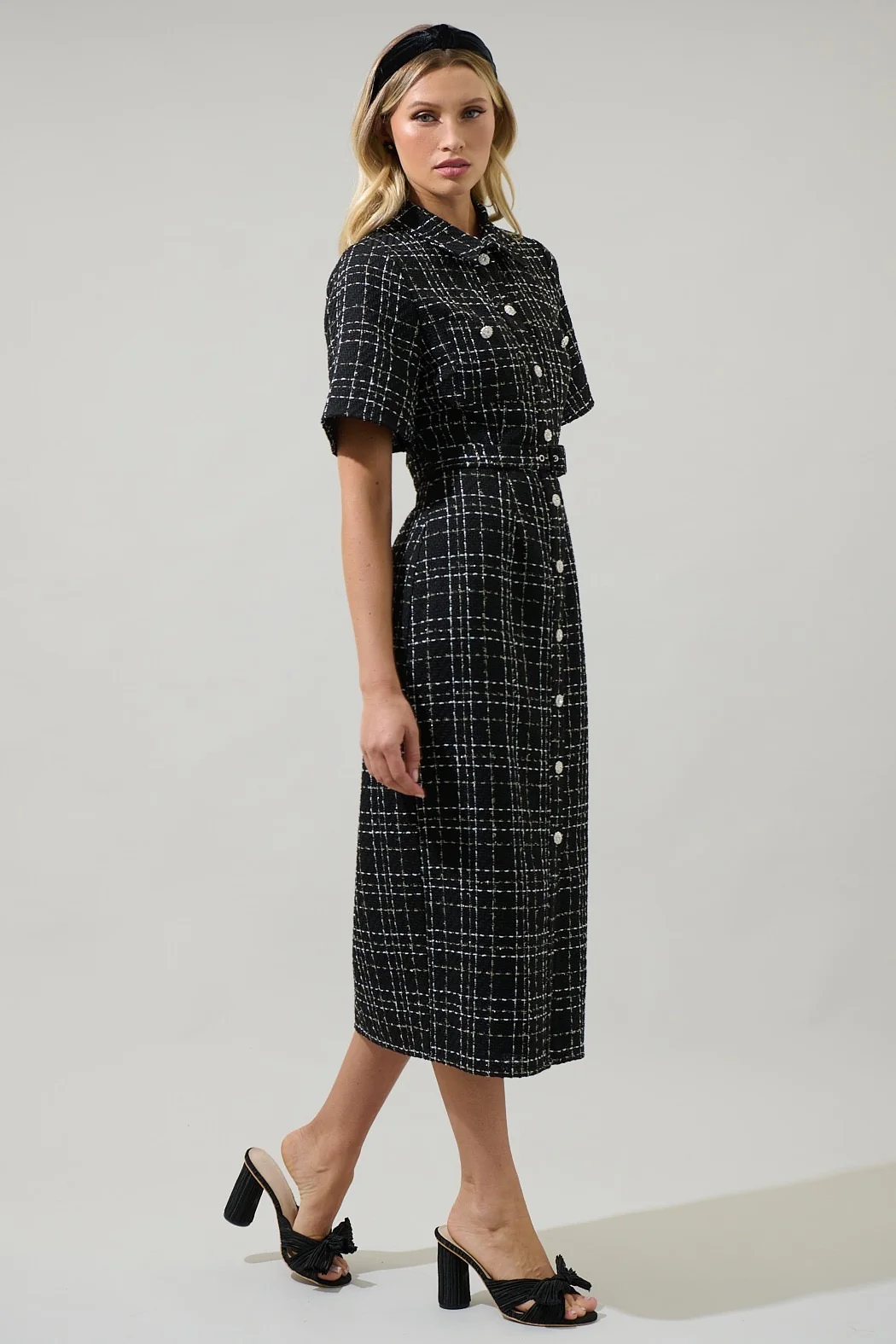 Vestido camisero tweed botones joya Negro