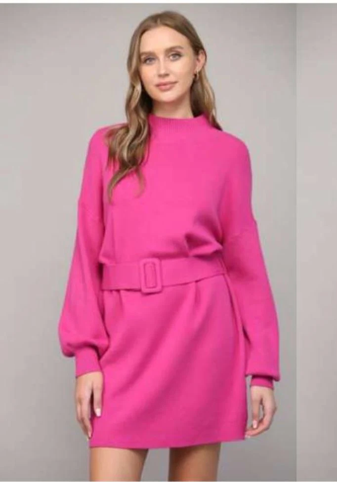 Vestido punto con cinturón Magenta