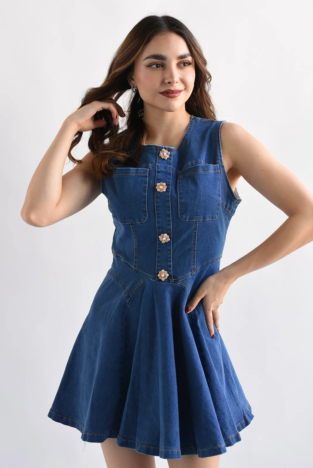 Vestido corto botones joya Denim