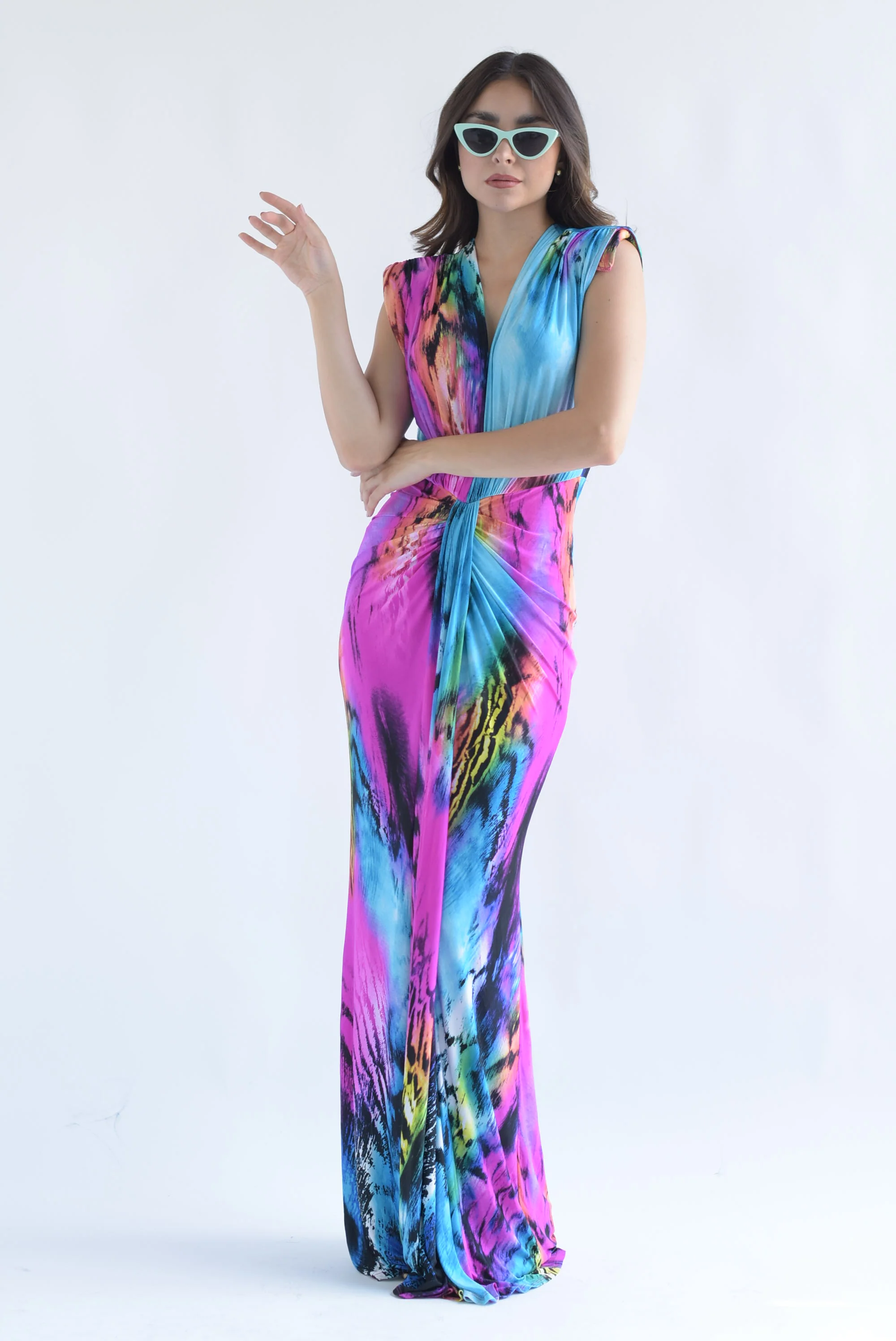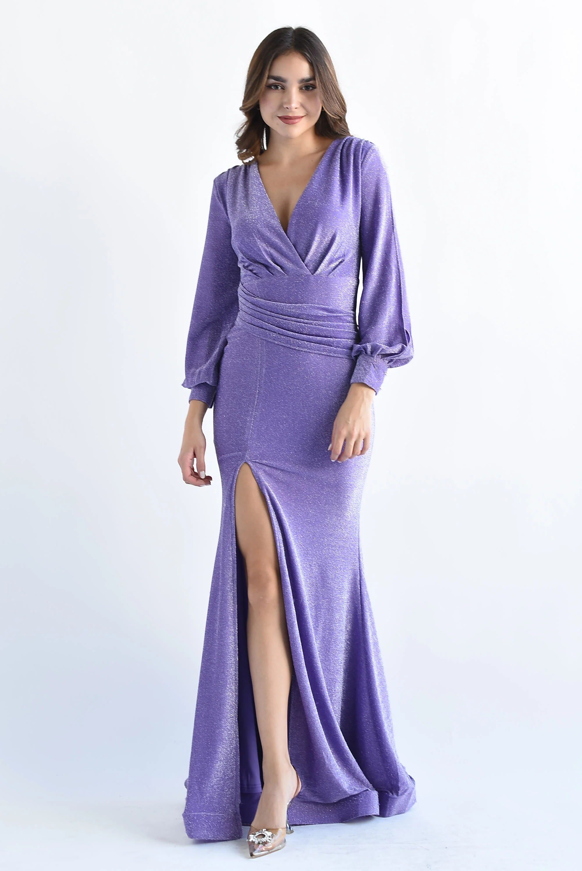 Vestido largo drapeado glitter Lila