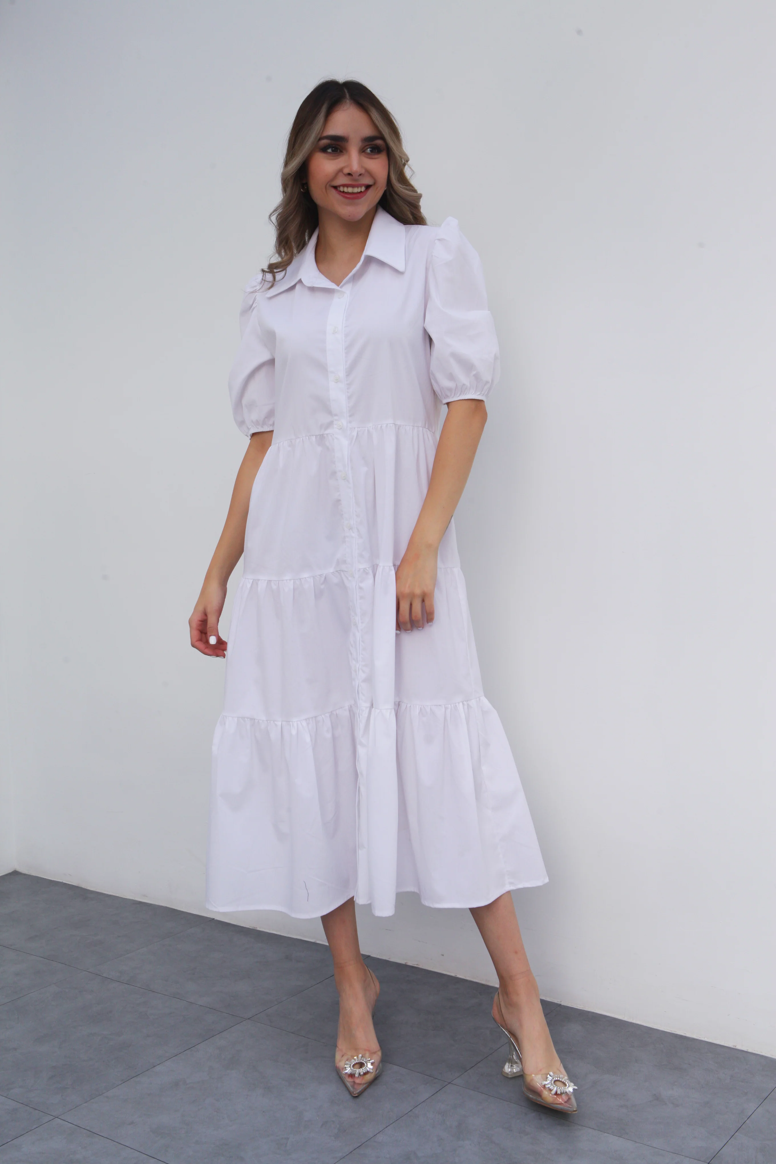 Vestido camisero manga corta Blanco