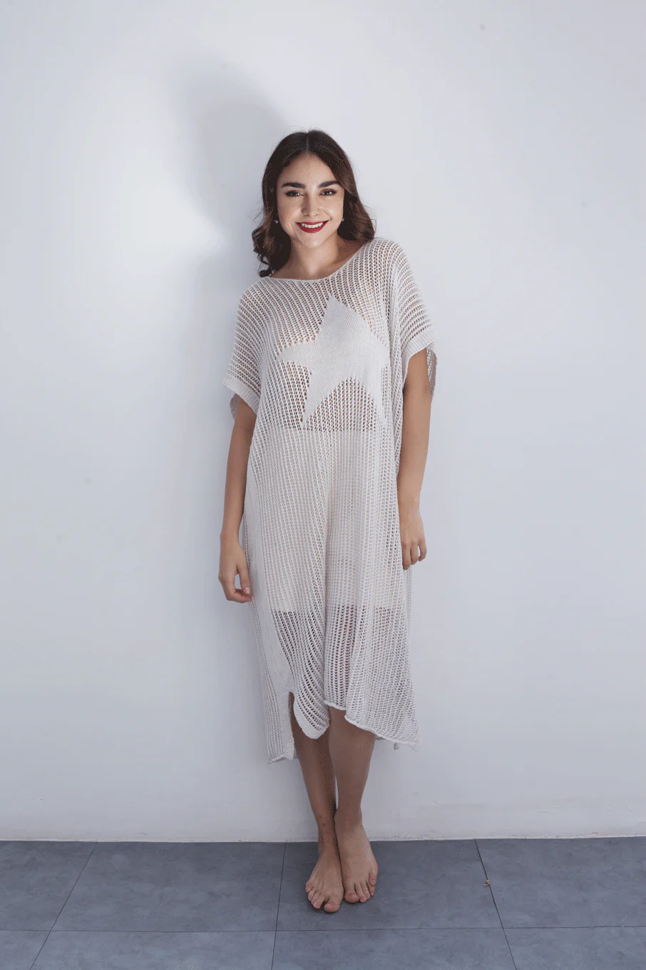 Vestido crochet Estrella Crudo