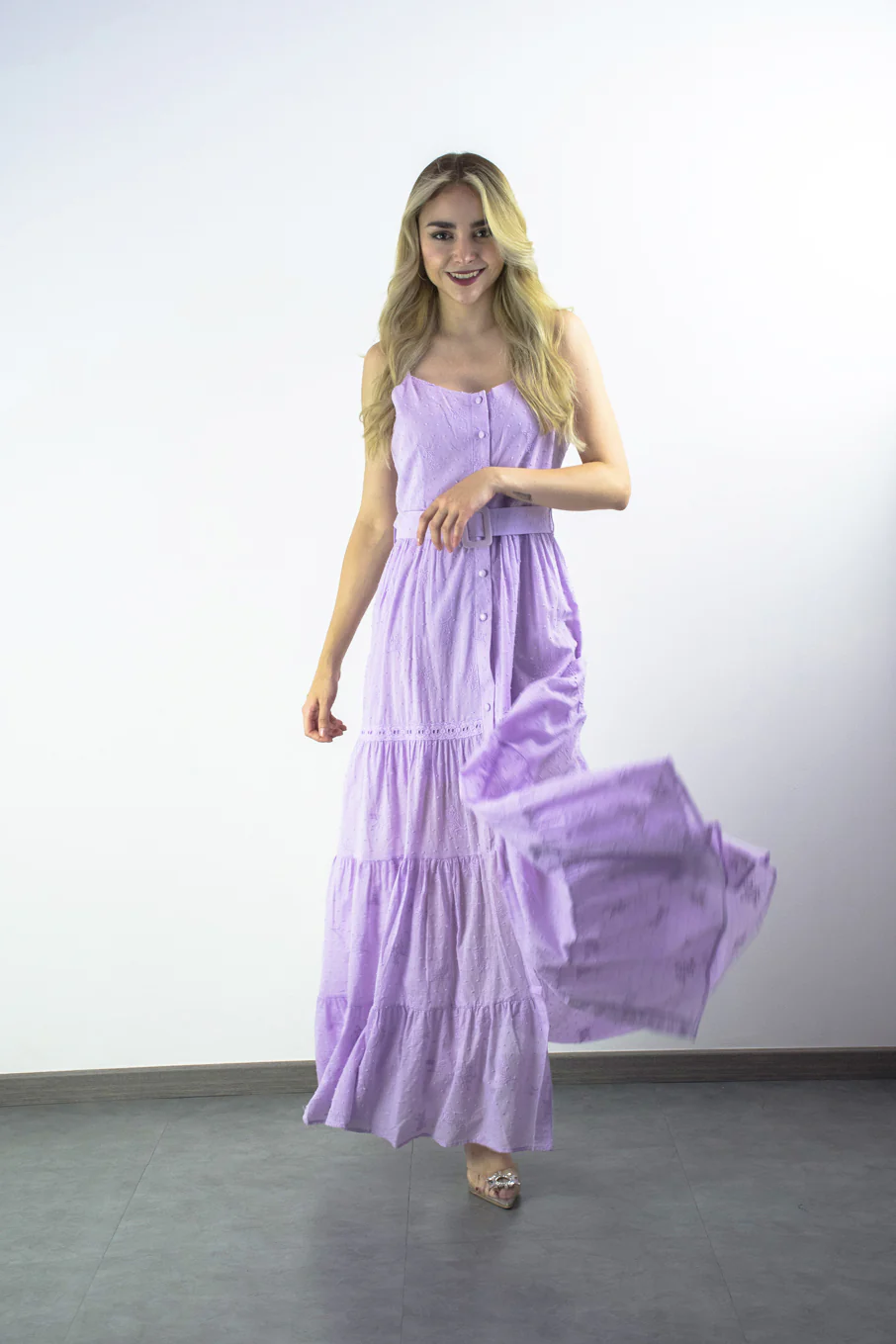 Vestido largo con tira bordada Lila