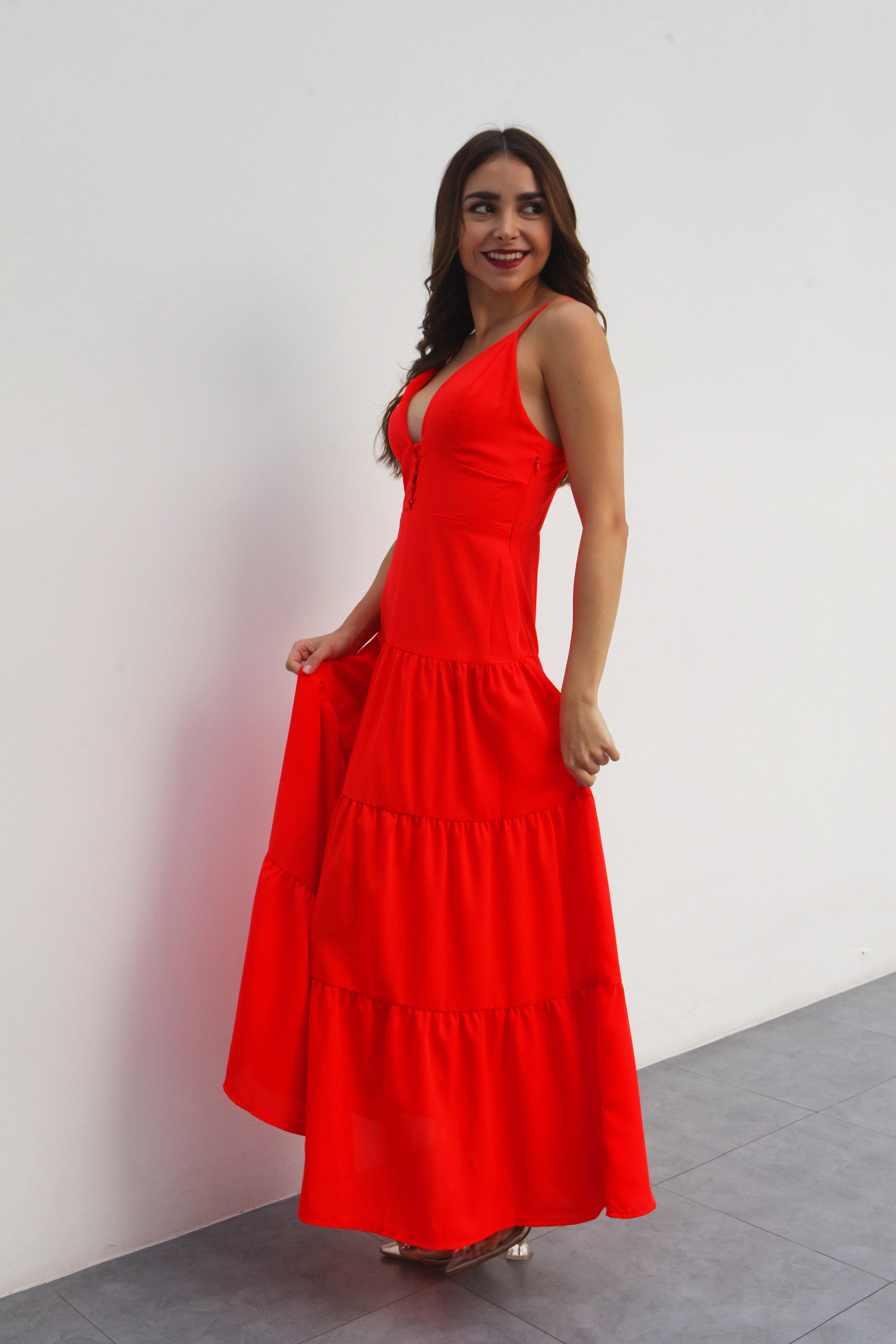 Vestido largo tirantes Rojo Tomate