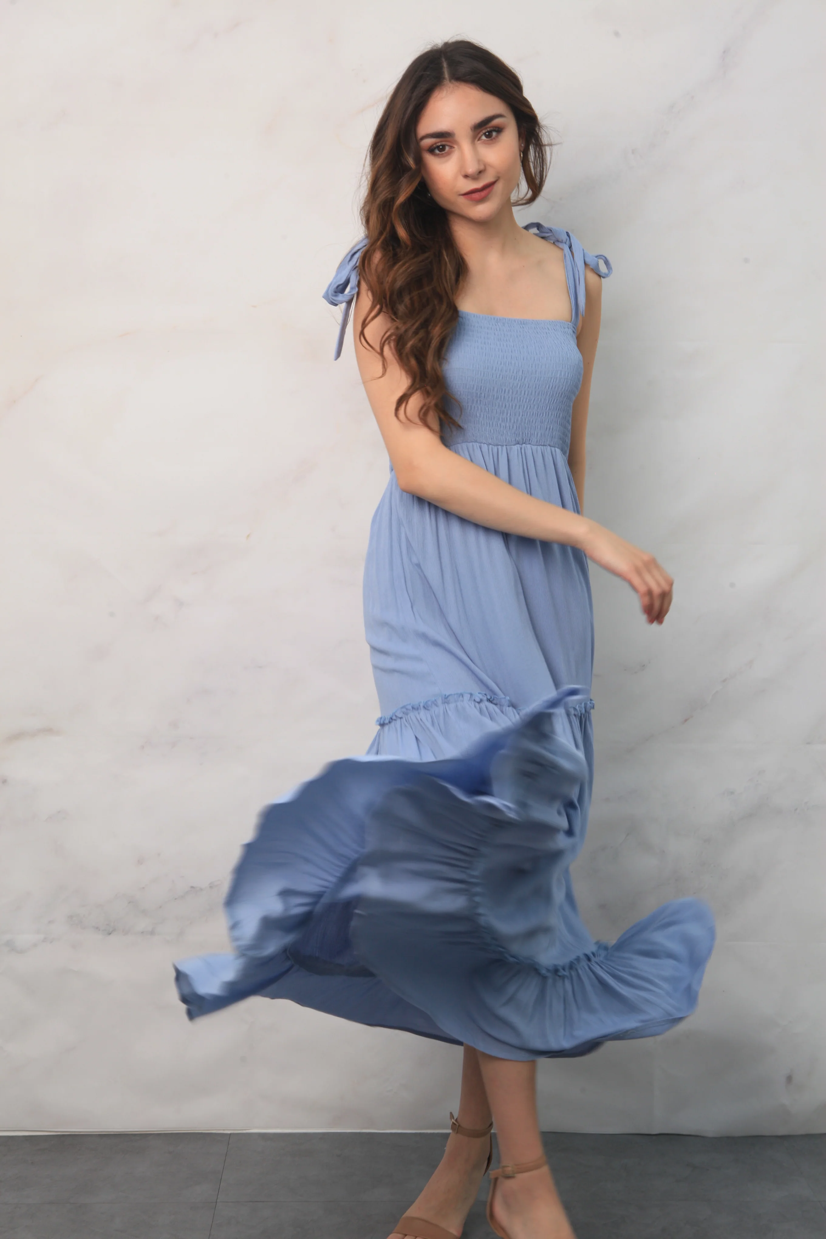Vestido largo de tirantes con elástico Azul