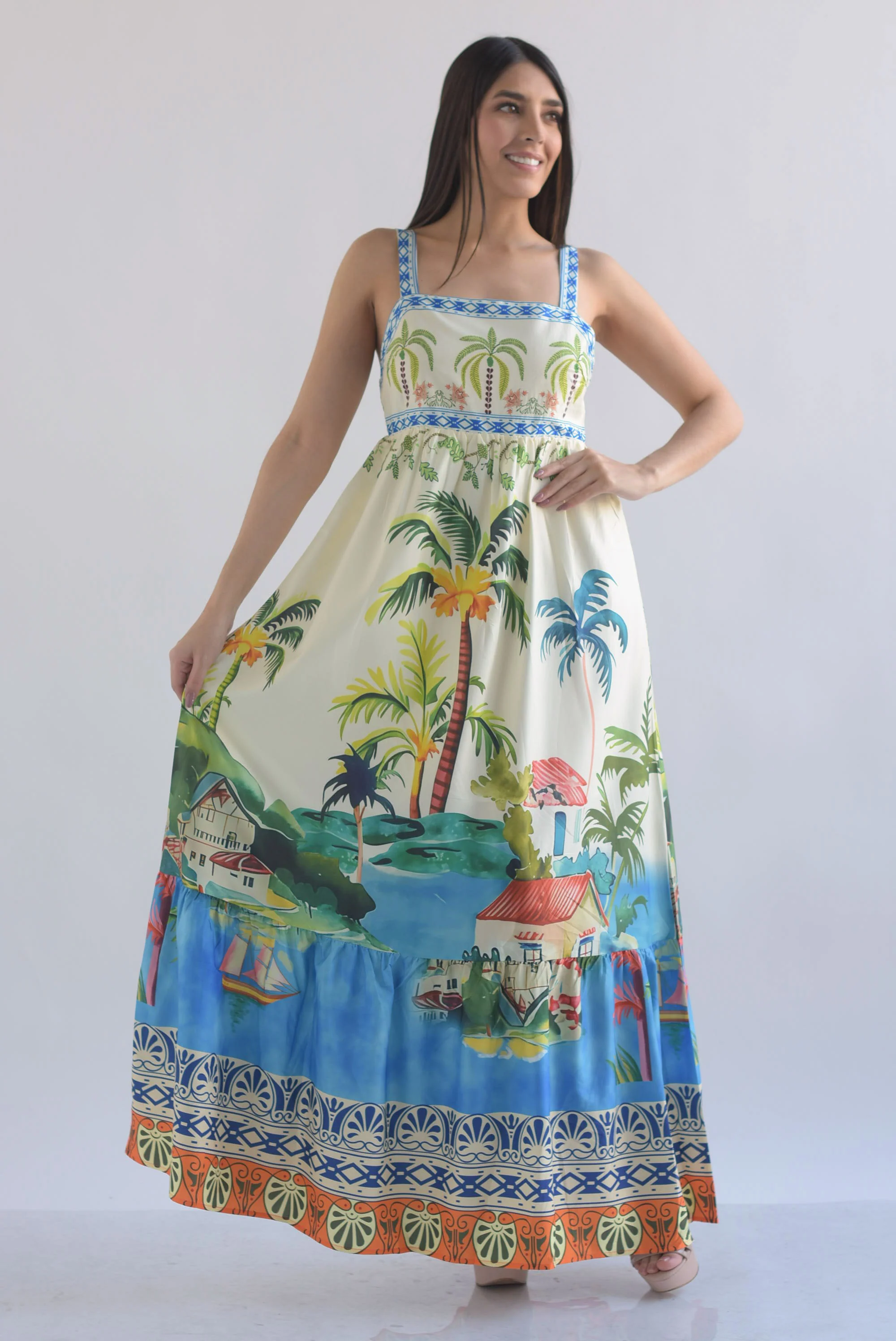 Vestido Tropical Palmeras tirantes