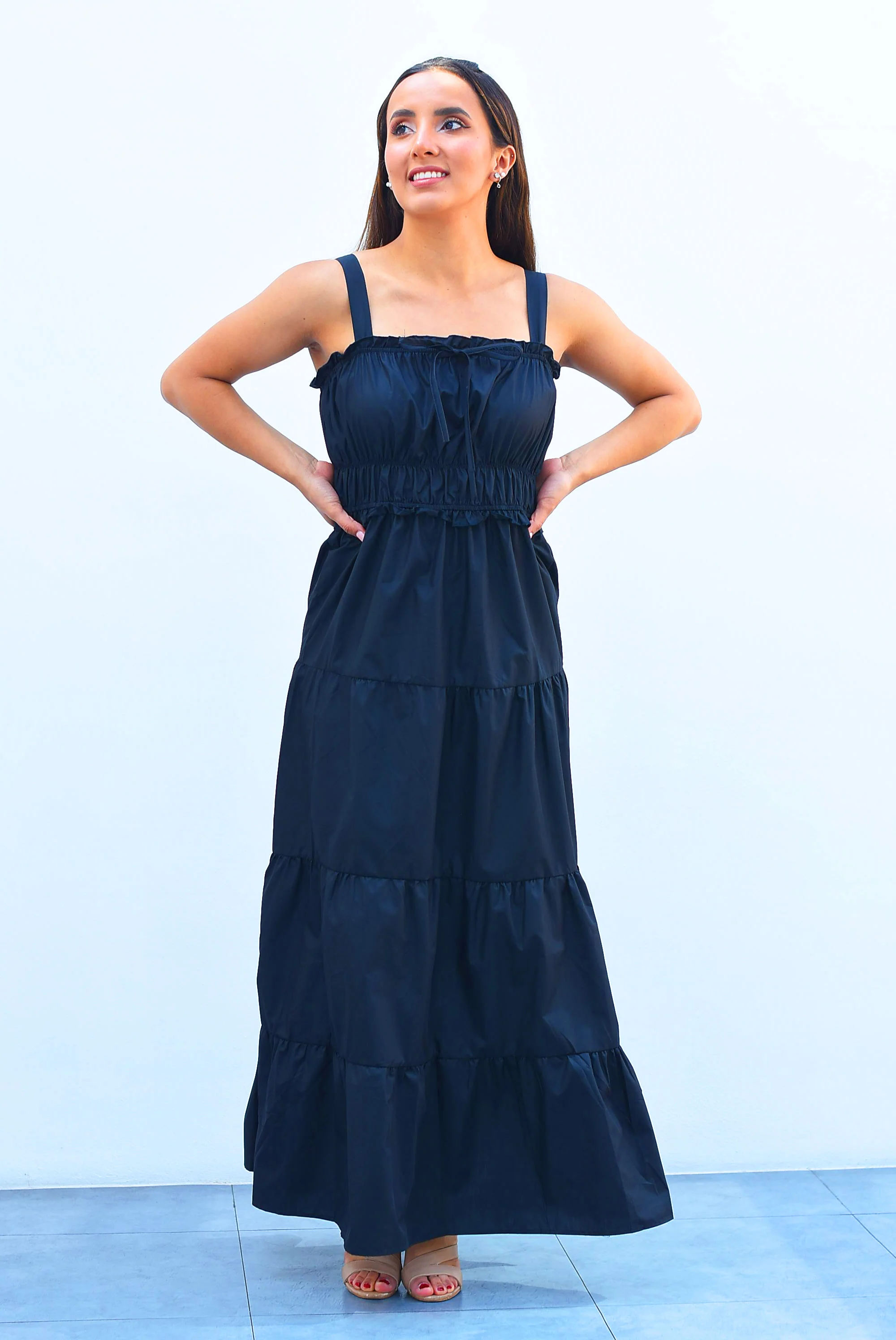 Vestido tirantes falda olanes Negro