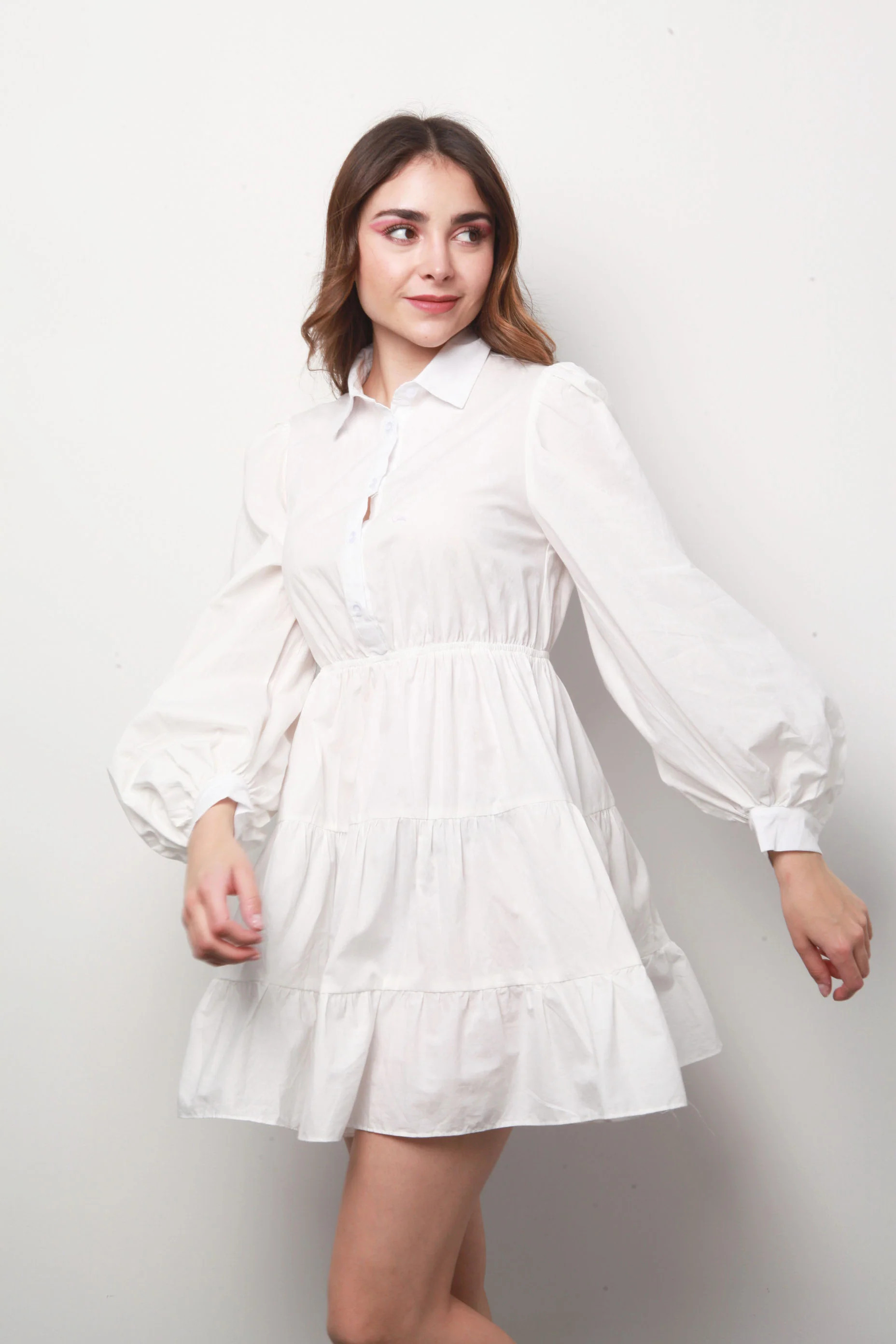 Vestido camisa con falda olan Blanco