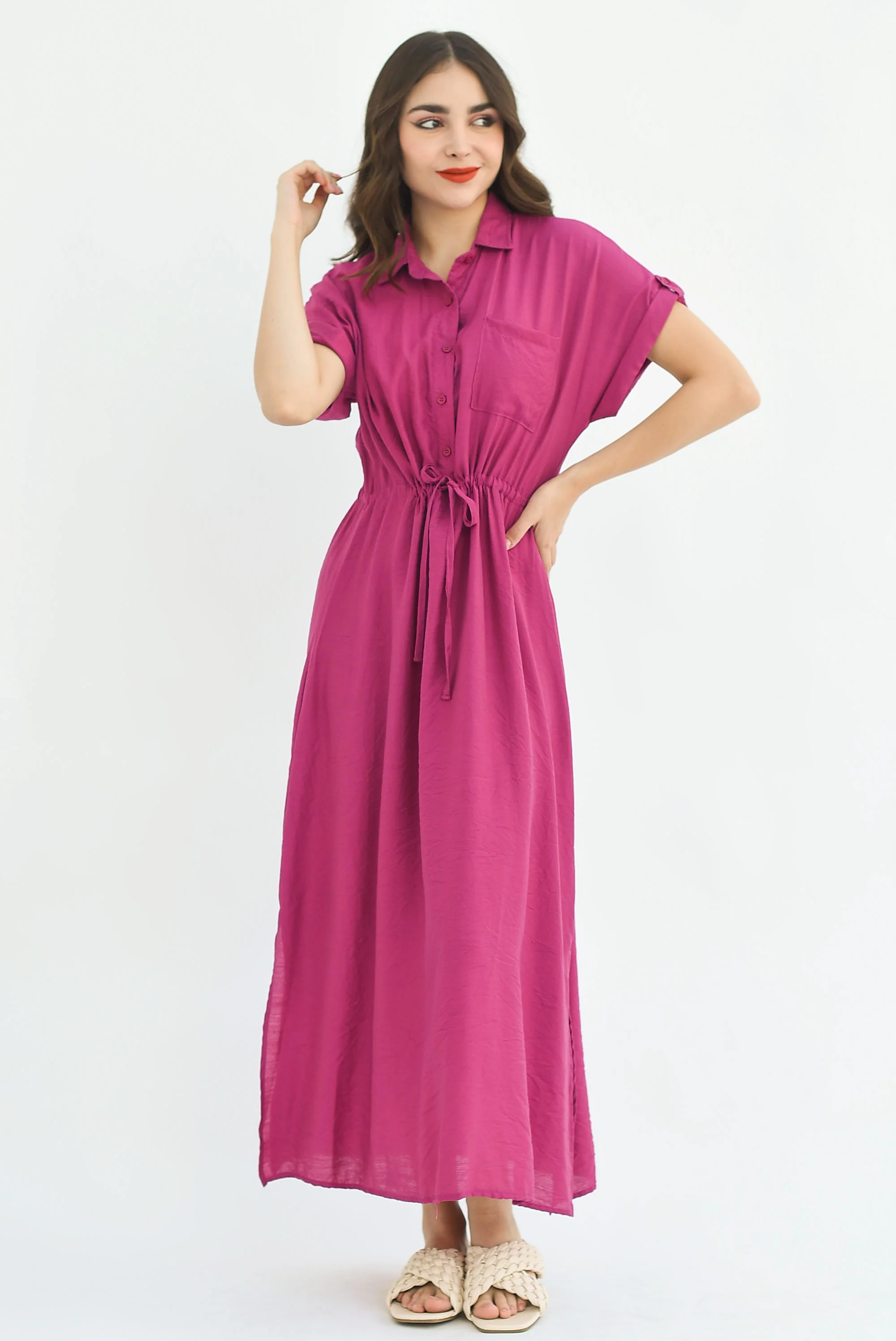 Vestido camisero largo cargo Magenta