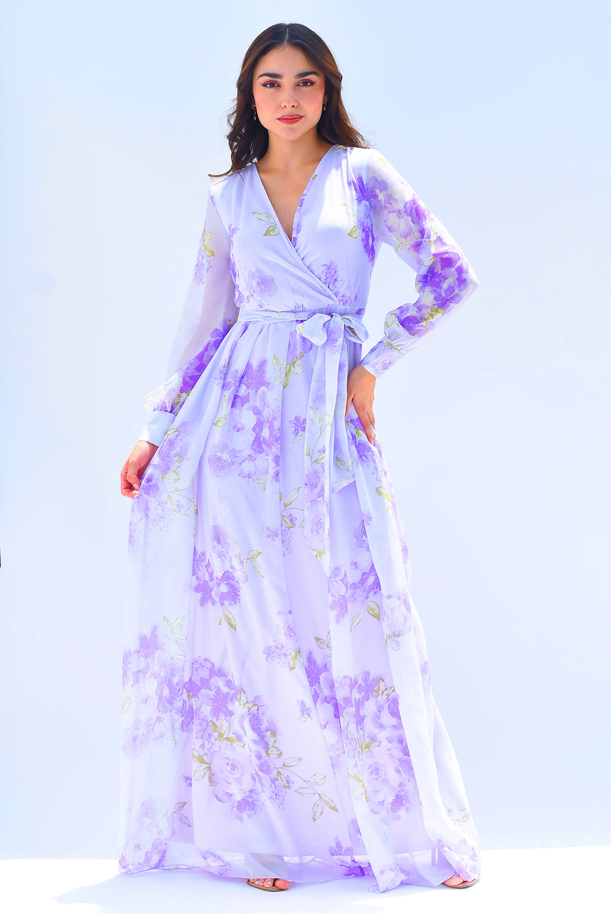 Maxidress gasa flores Lila